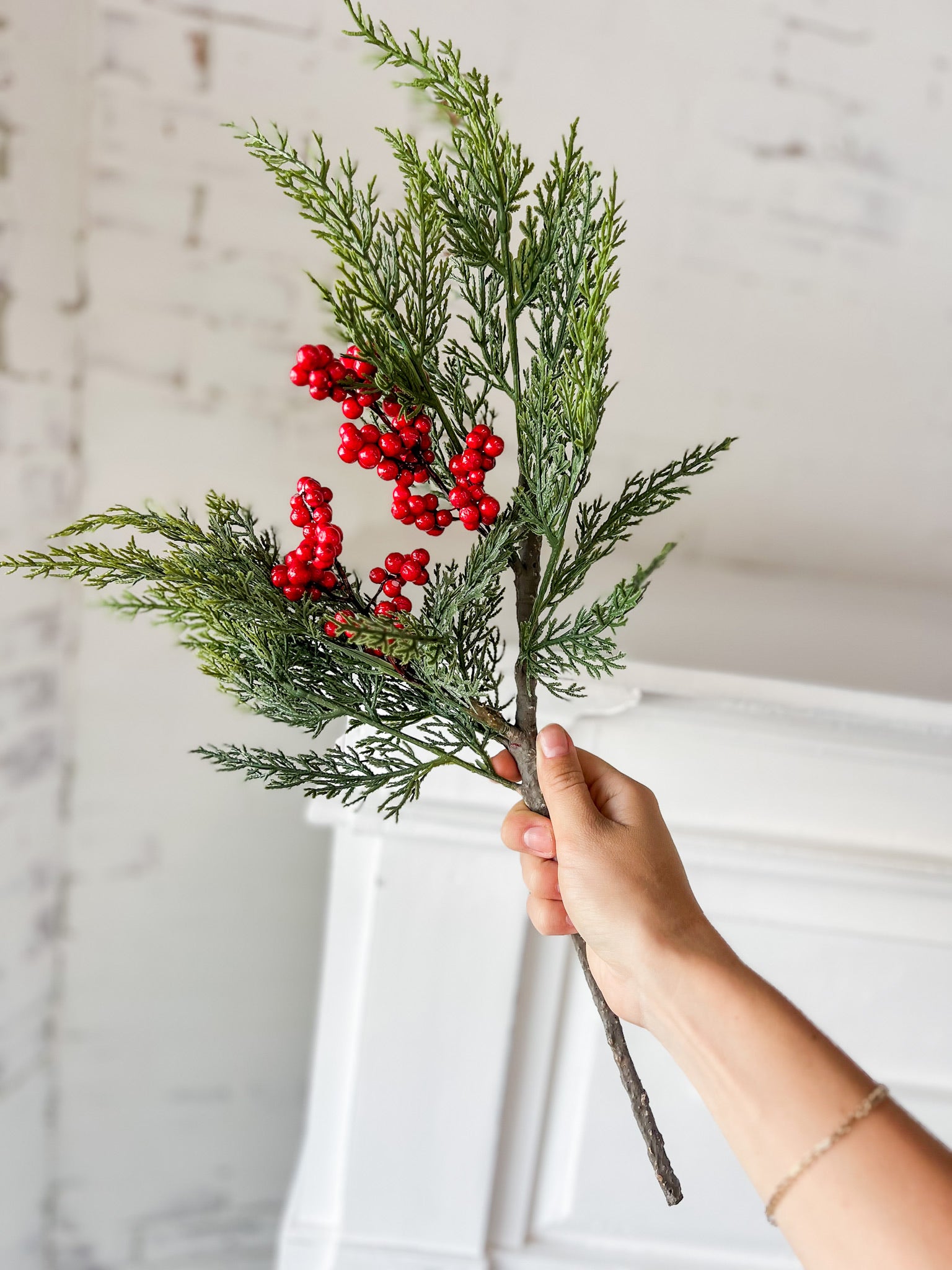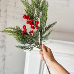 16" Cedar with red berry stem