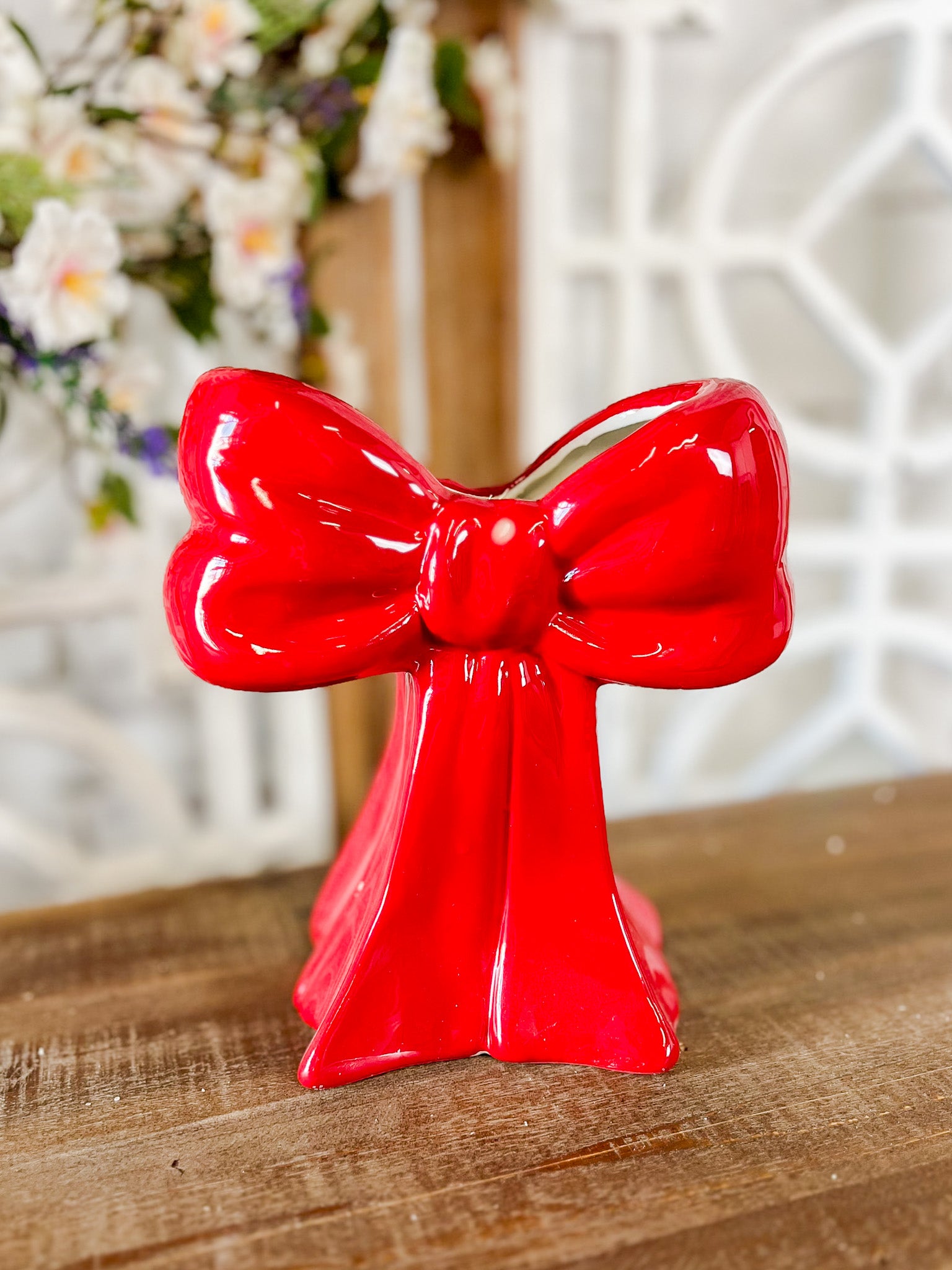 This red bow vase is equal parts charming and statement-making. With its glossy finish and sculptural bow design, it adds a playful yet elevated touch to shelves, mantels and tabletops. The crisp red color keeps it timeless and easy to style in any season.