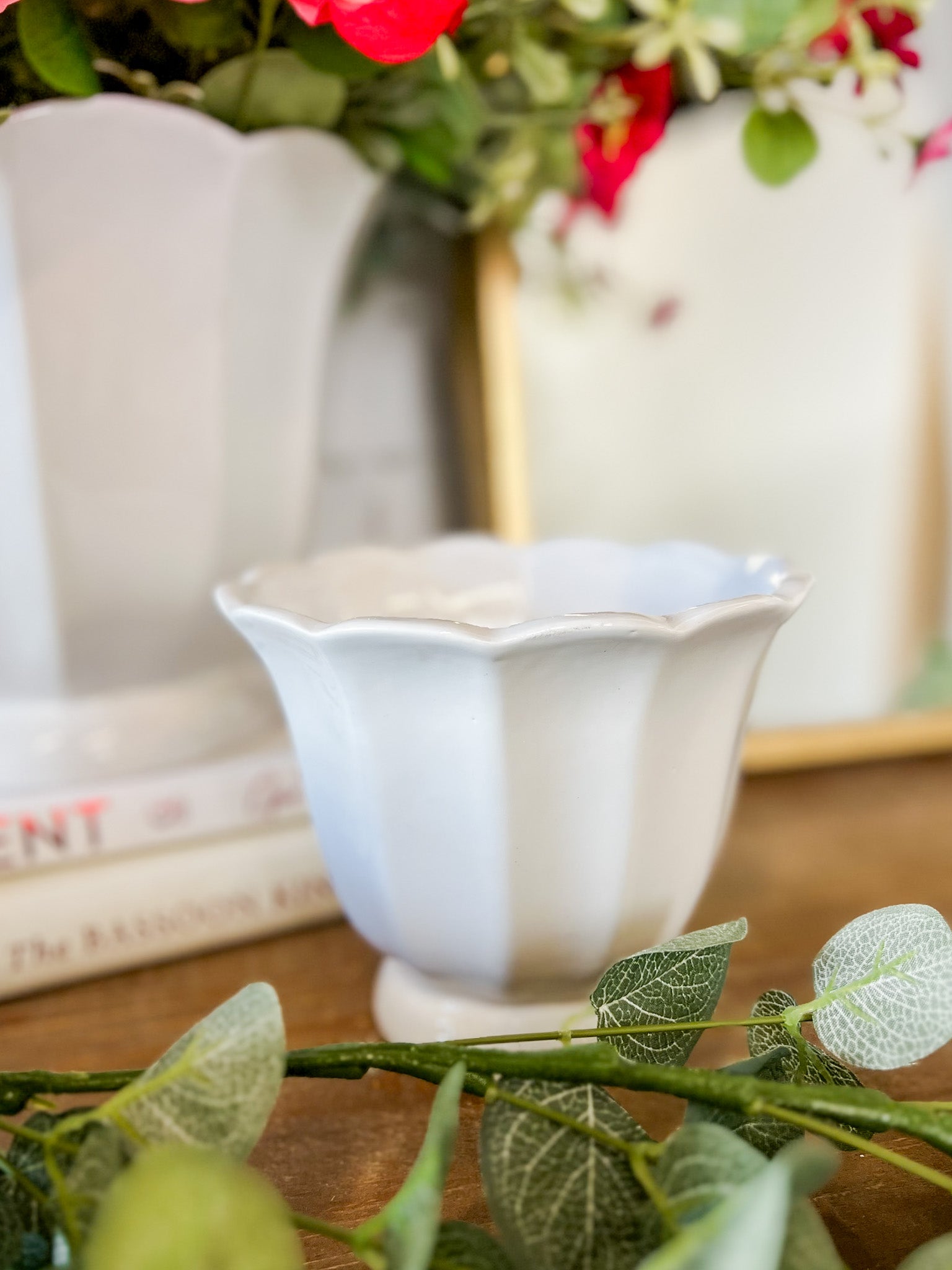 This ceramic tulip planter is one of those timeless pieces you’ll reach for season after season. With its soft white finish and classic tulip-inspired shape, it works beautifully styled on shelves, consoles, coffee tables or windowsills. Even better, this planter isn’t just pretty — it’s practical too, making it perfect for both faux stems and real plants.