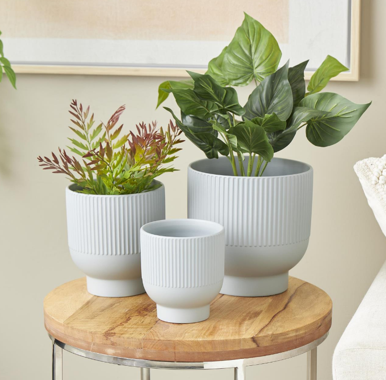 - Ceramic set of 3 planters boasts linear grooves and tapered bases, giving it a unique aesthetic appeal