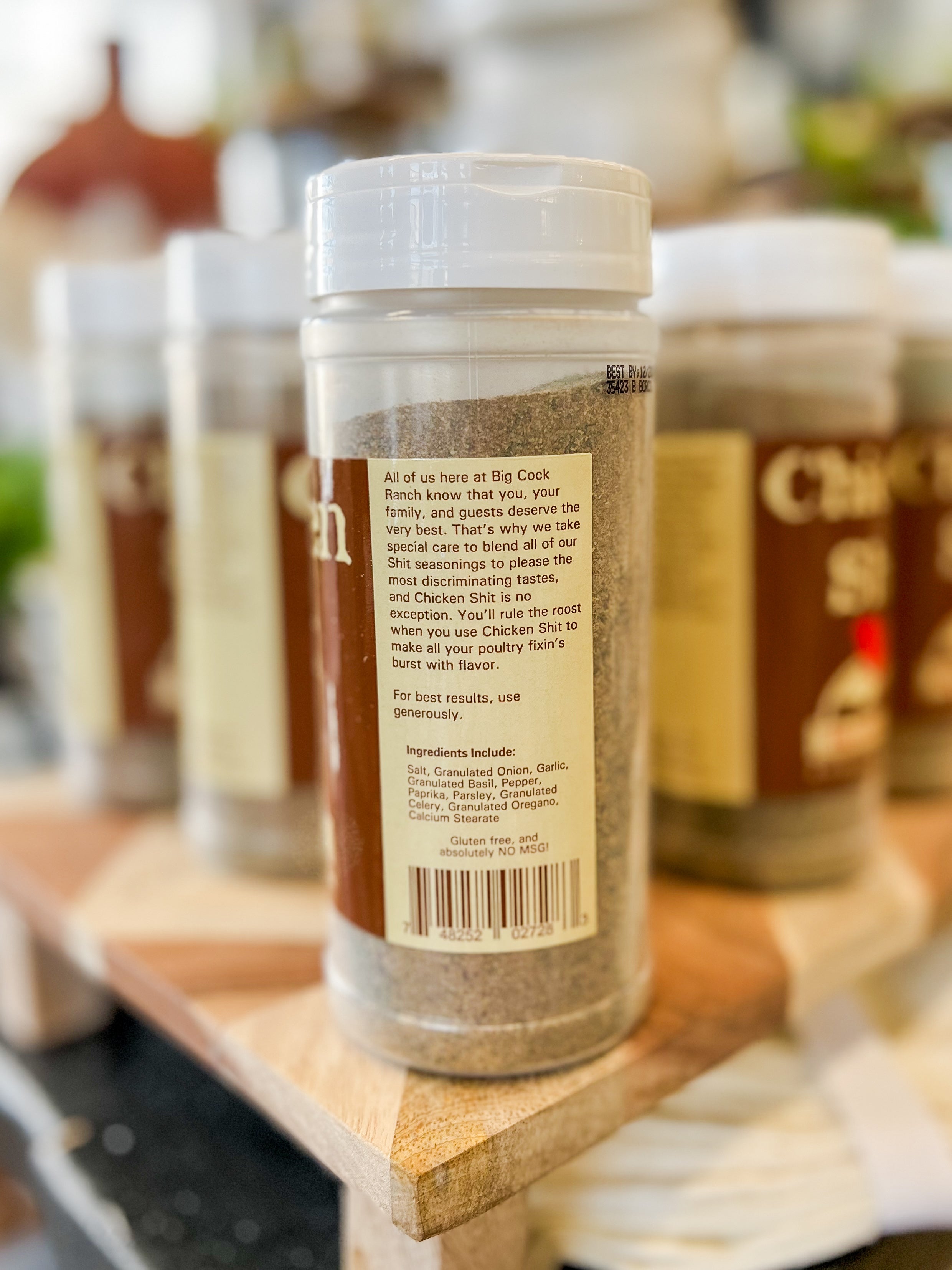 We’ve got something to crow about! Chicken Shit is the seasoning designed especially for chicken! This ain’t the same herbs and spices the fat man in the white suit uses; this is so much better! Chicken Shit is guaranteed to produce the juiciest, most succulent chicken imaginable. No matter how you prepare your poultry, Chicken Shit will bring out the best of the bird.
