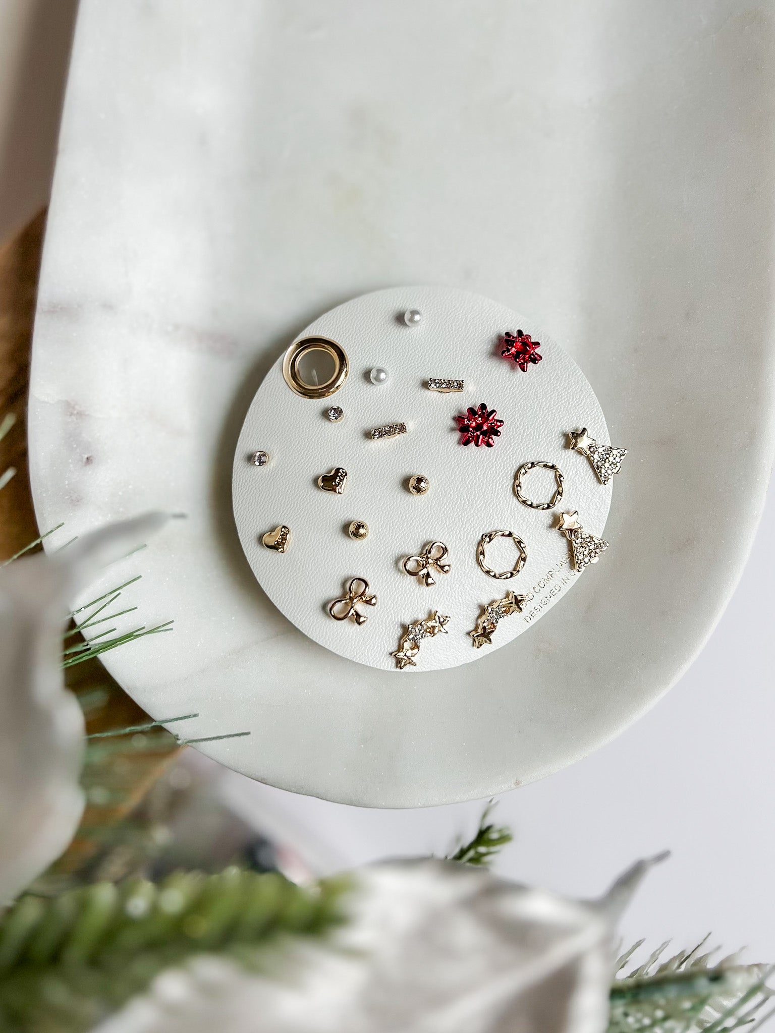 A festive mix of pearls, bows, trees, and sparkle — this 12-pair earring set has a little something for every occasion this season. Wear them solo or mix and match for subtle holiday shine.