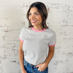 Classic Striped Tee with a Pop of Pink