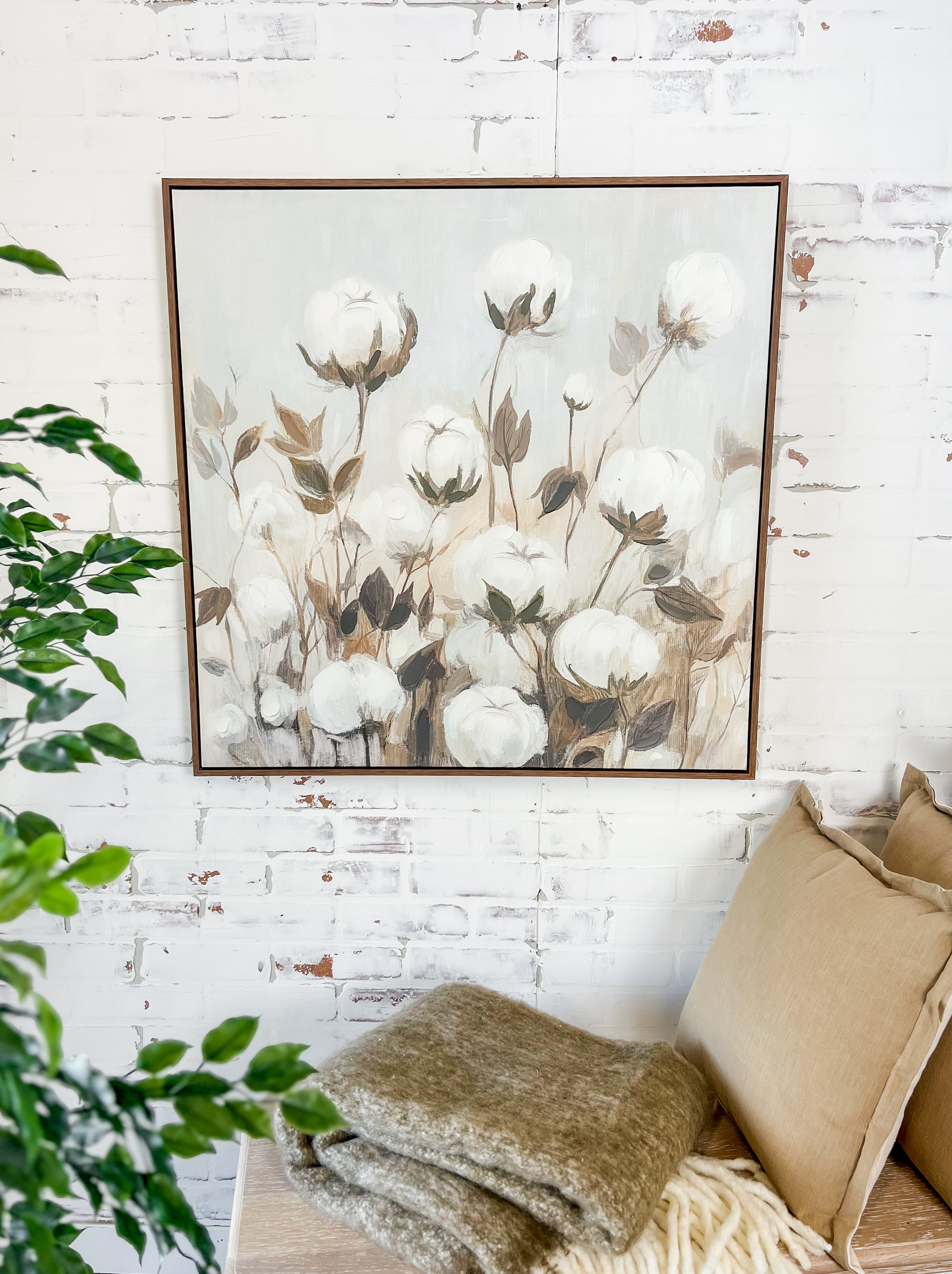 Classic, neutral and timeless. The soft cotton stems and muted palette make this canvas easy to layer with other art or let it stand beautifully on its own.