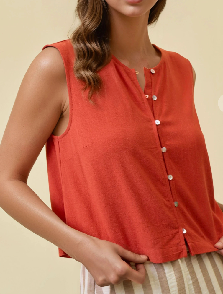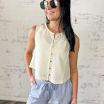 Coastal Linen Blend Button Tank