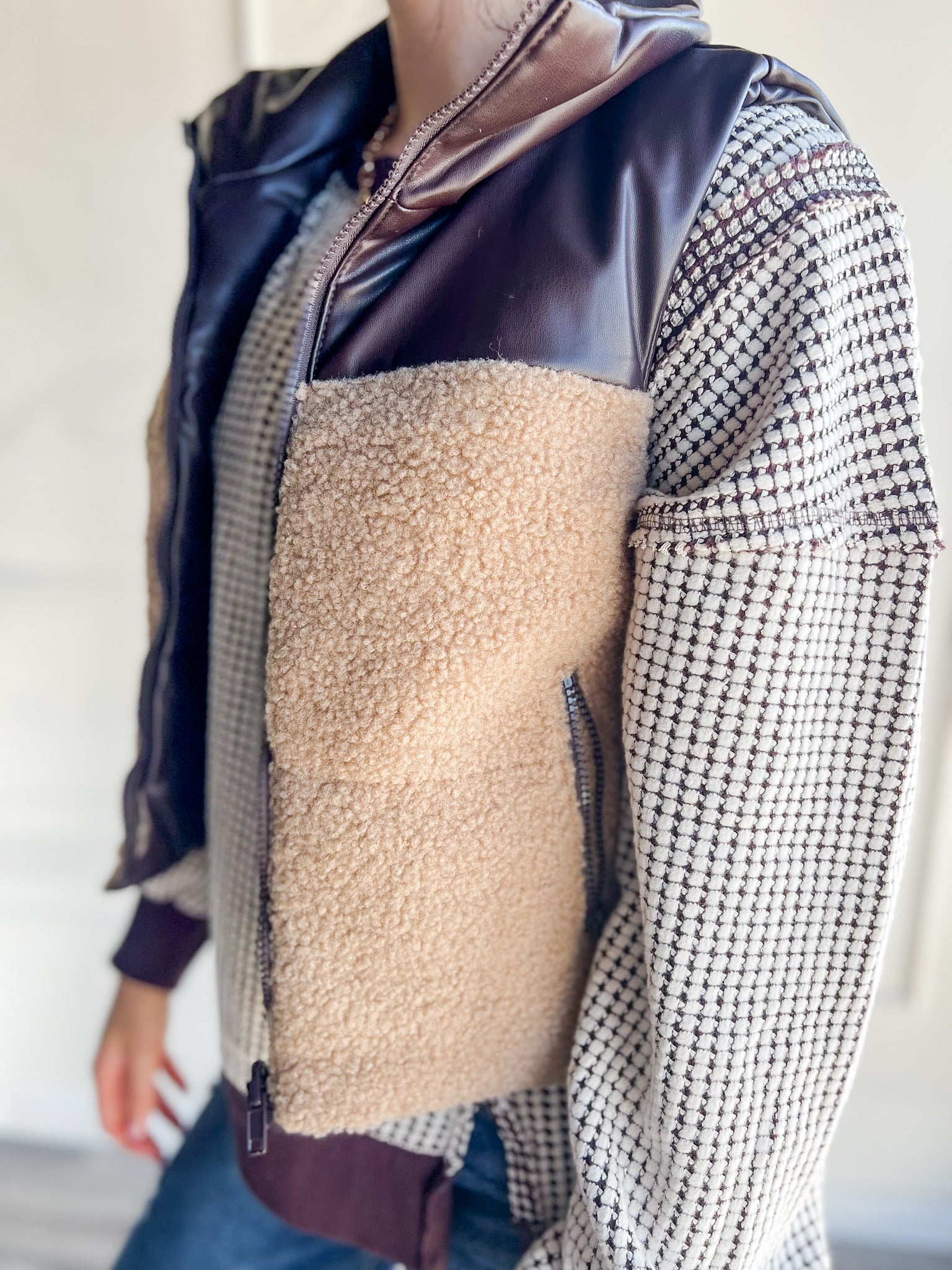 Fully reversible: faux leather + sherpa sides