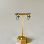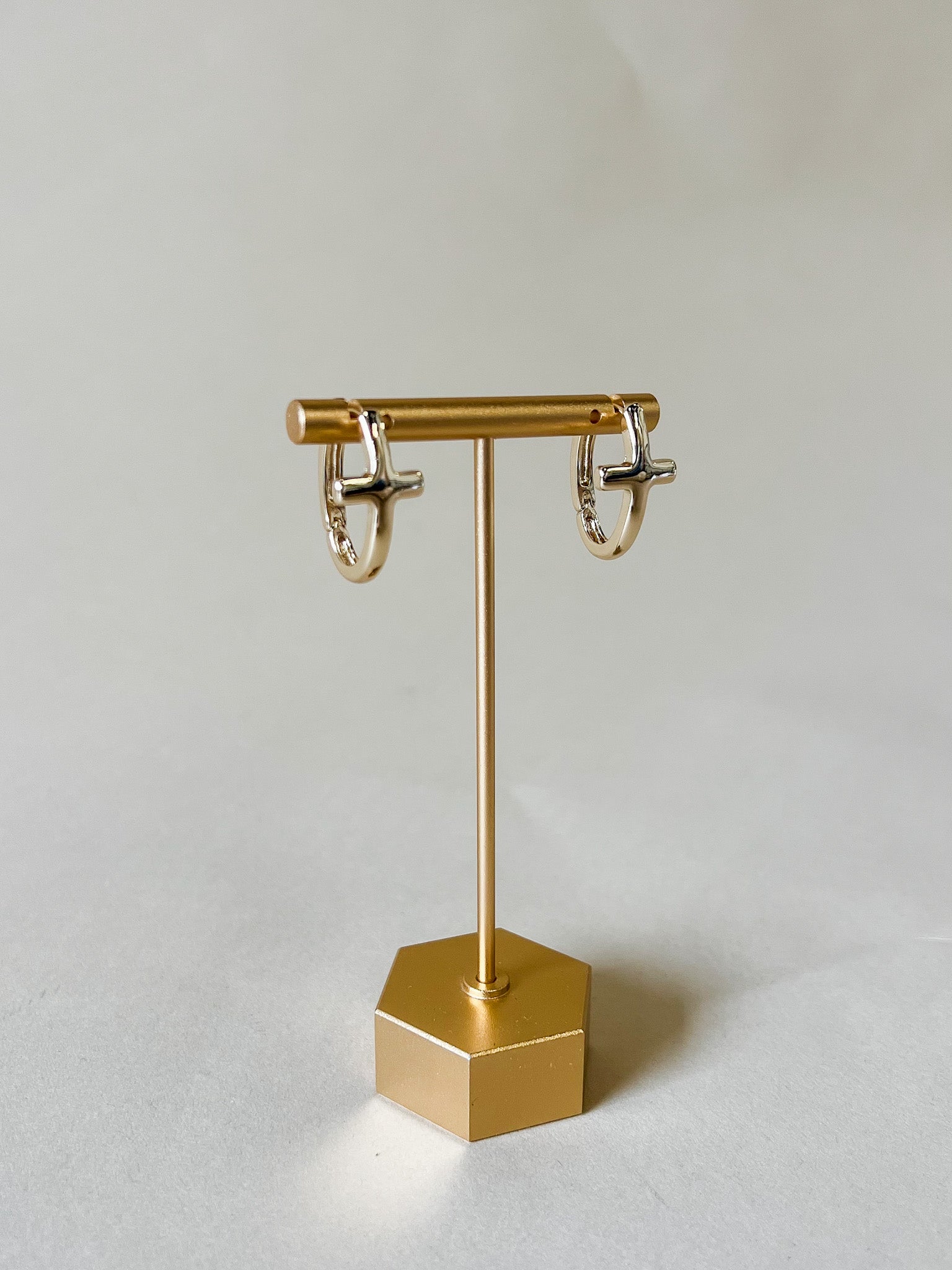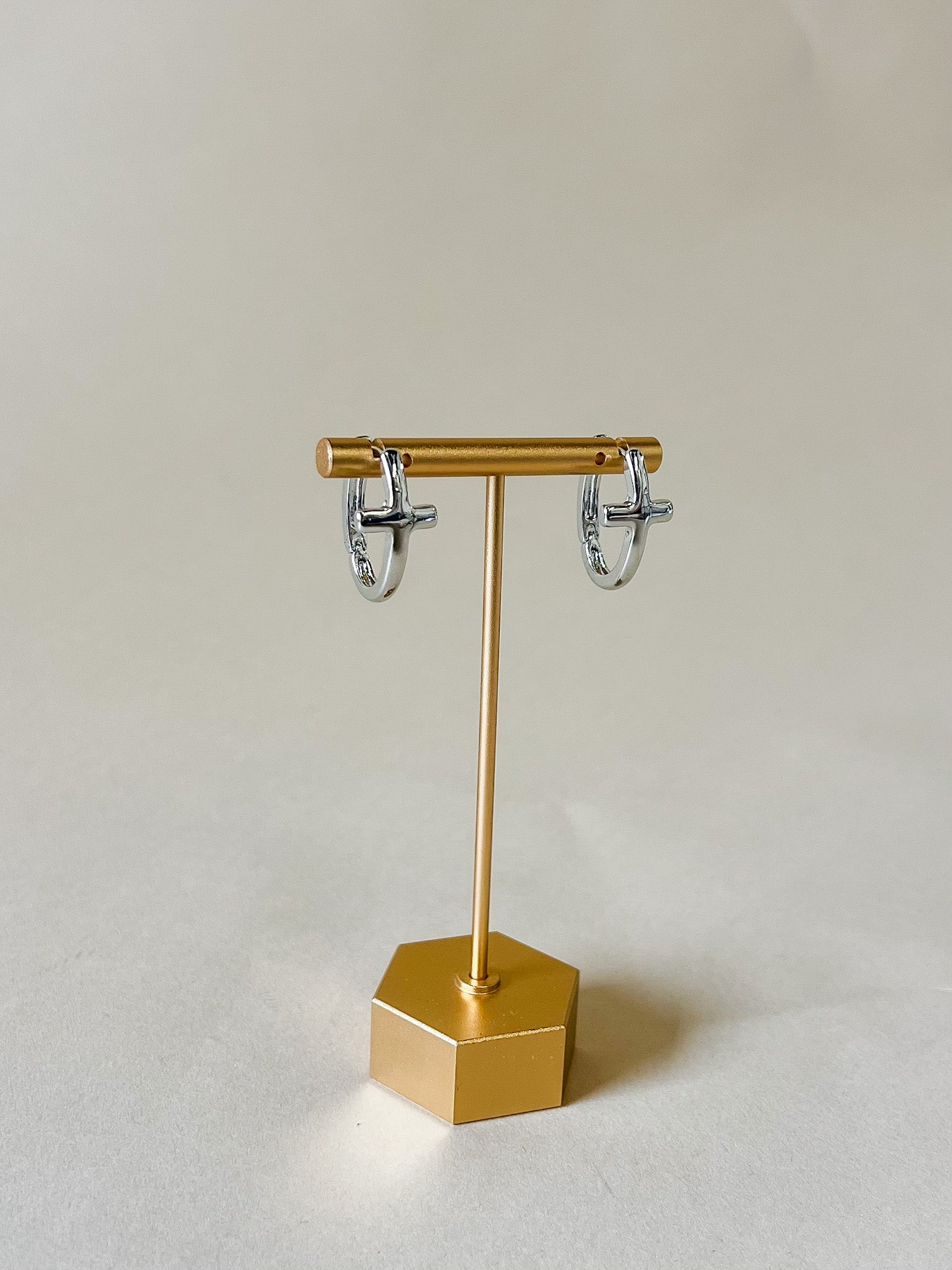 These silver huggie hoops feature a small cross detail for a simple, meaningful touch. The compact hoop shape sits close to the ear, making them easy to wear every day while still adding a subtle statement. Classic, polished and easy to style with anything.