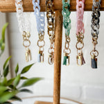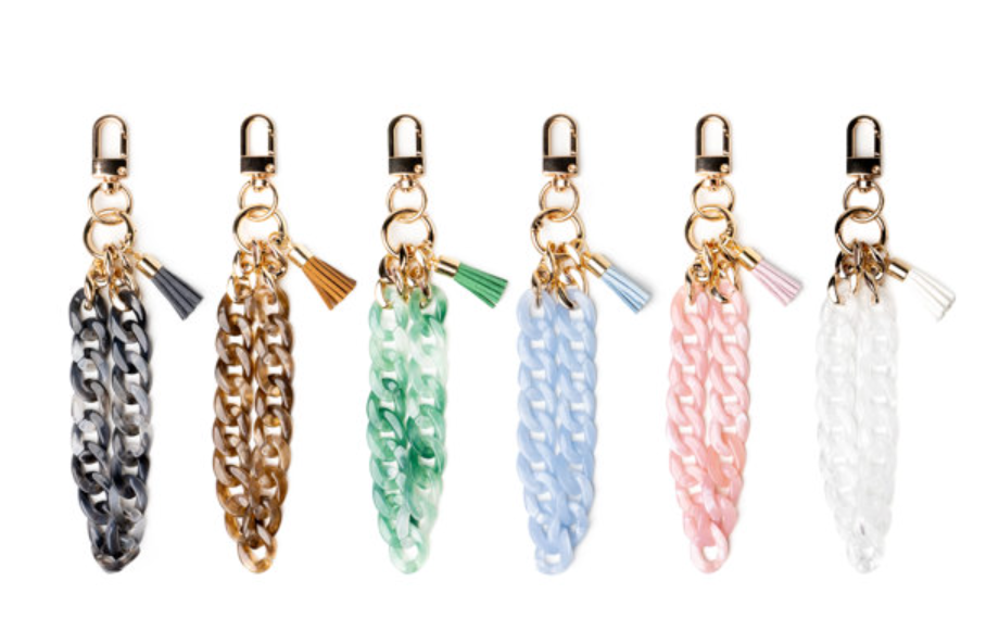 Add a personal touch and keep it all together when you clip this wristlet keychain to keys, wallets and small bags.