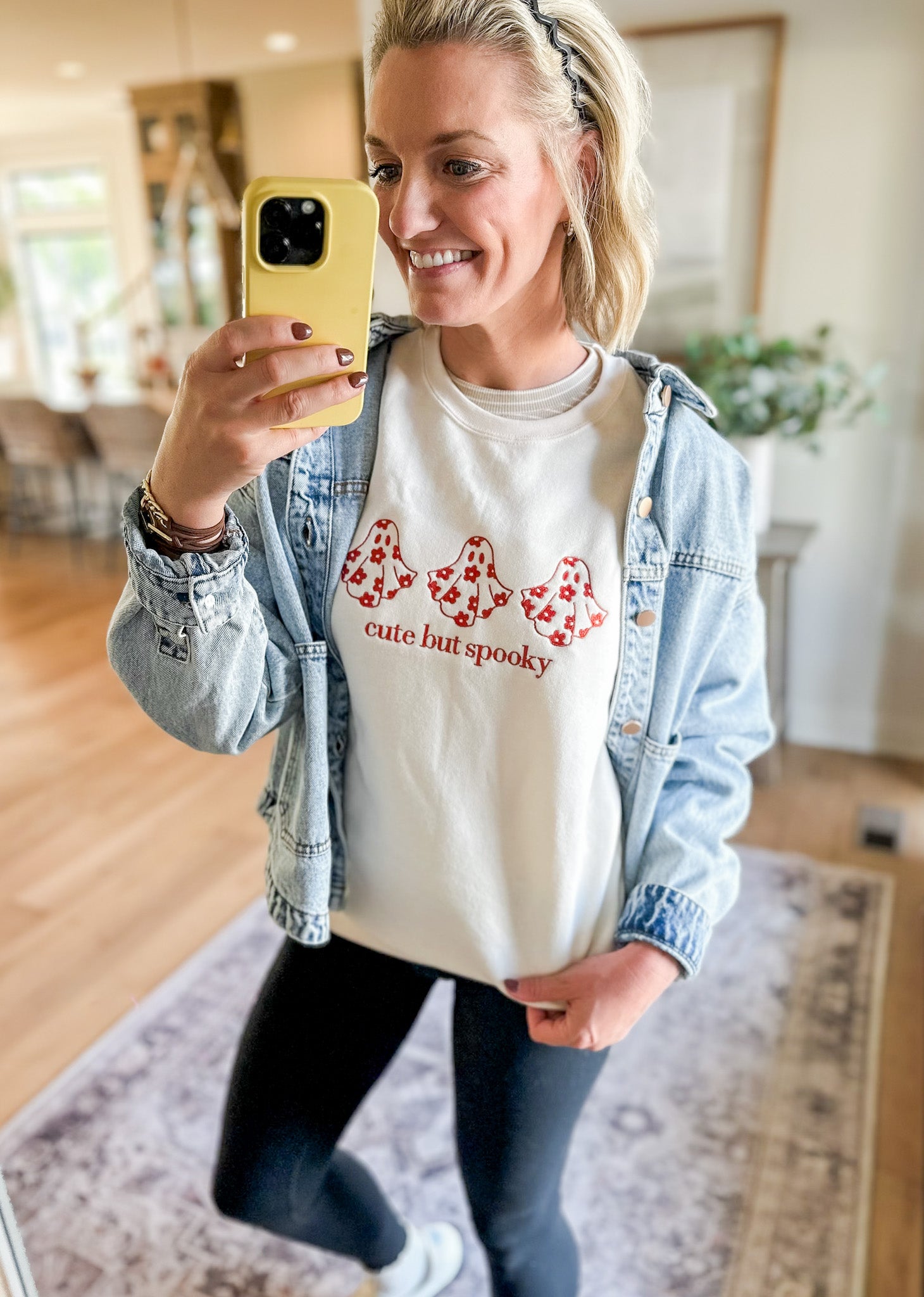 For the mom who loves Halloween but values comfort over costumes. Playful ghosts, cozy fleece, and a little cheeky charm—just like your favorite fall day.