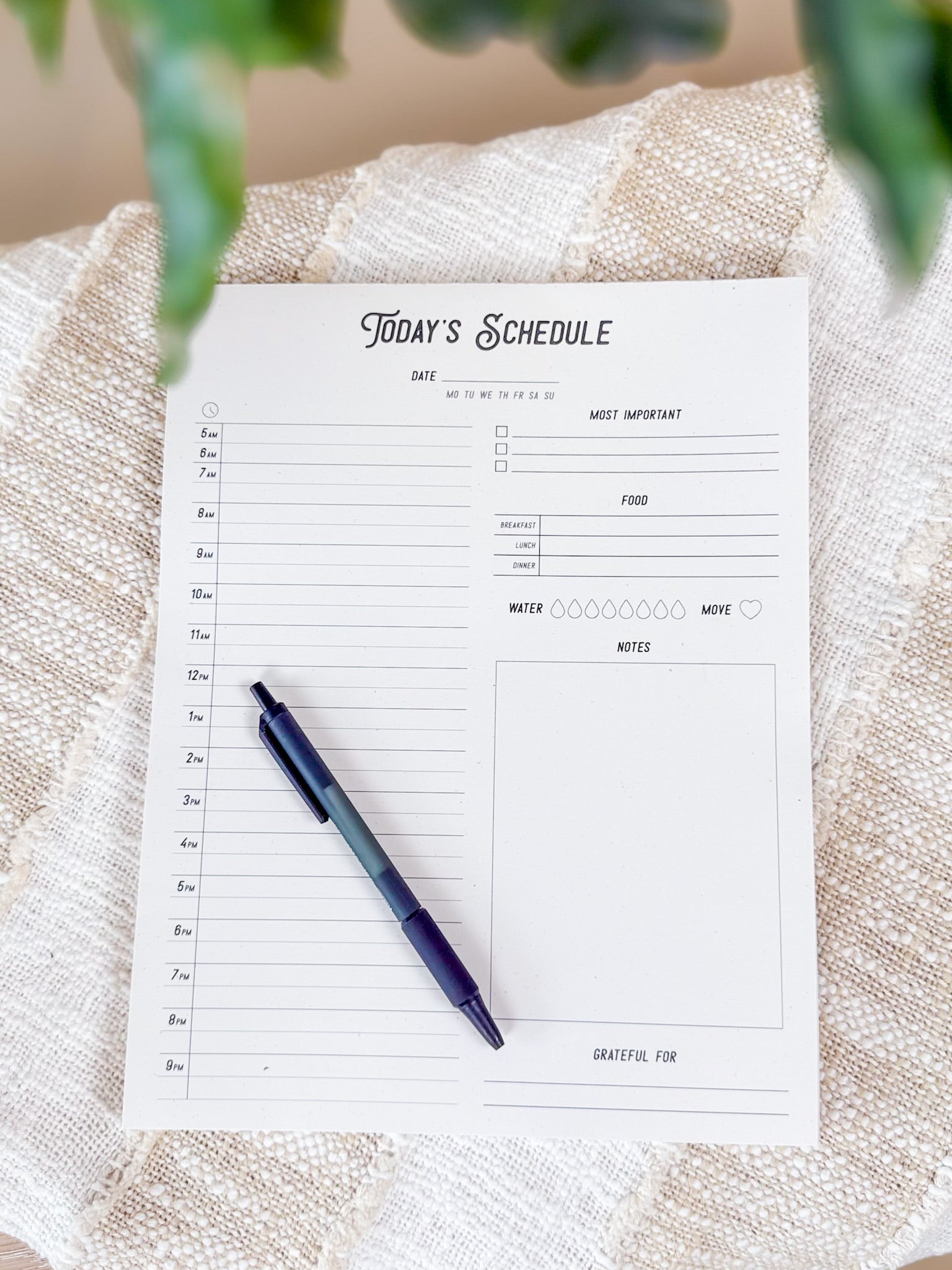 A clean, thoughtfully designed daily planner that helps you organize your schedule while keeping space for gratitude and reflection. Perfect for busy days, slow mornings and everything in between.