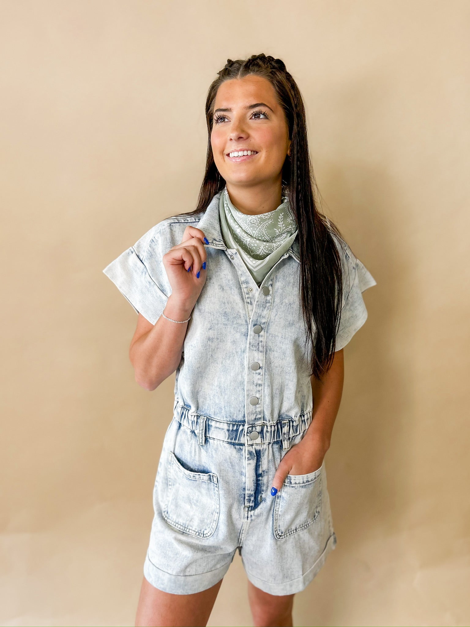 Comfy, casual, and cute as can be—this denim romper is your one-and-done outfit for summer days. With a stretchy waistband and front pockets (yes, real ones!), it’s perfect for errands, adventures, and everything in between.