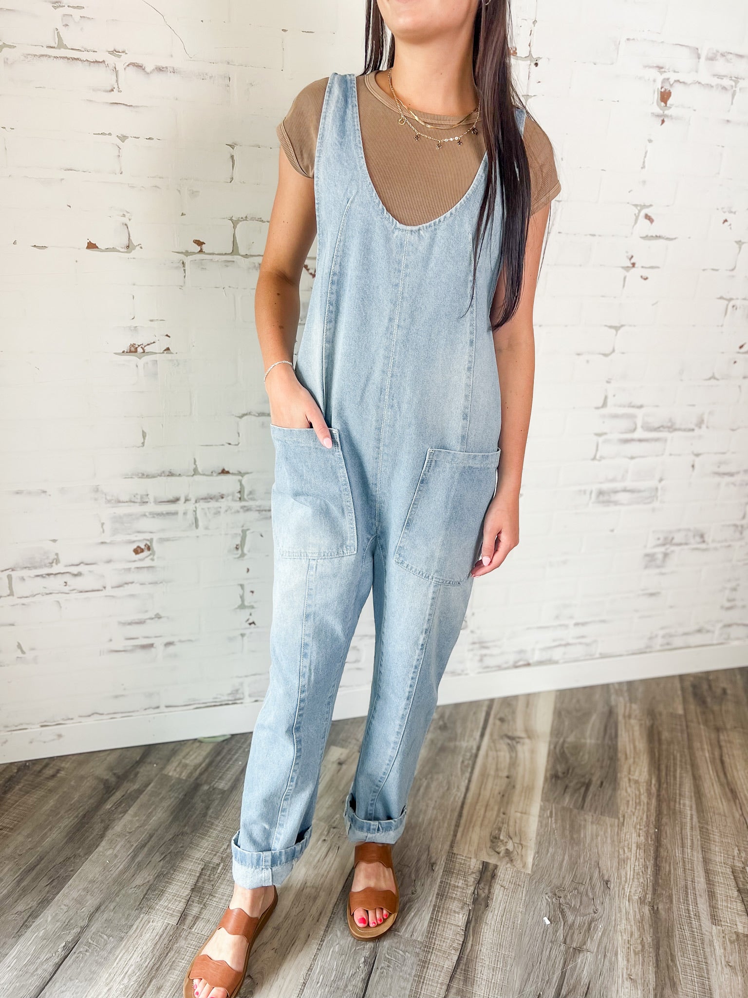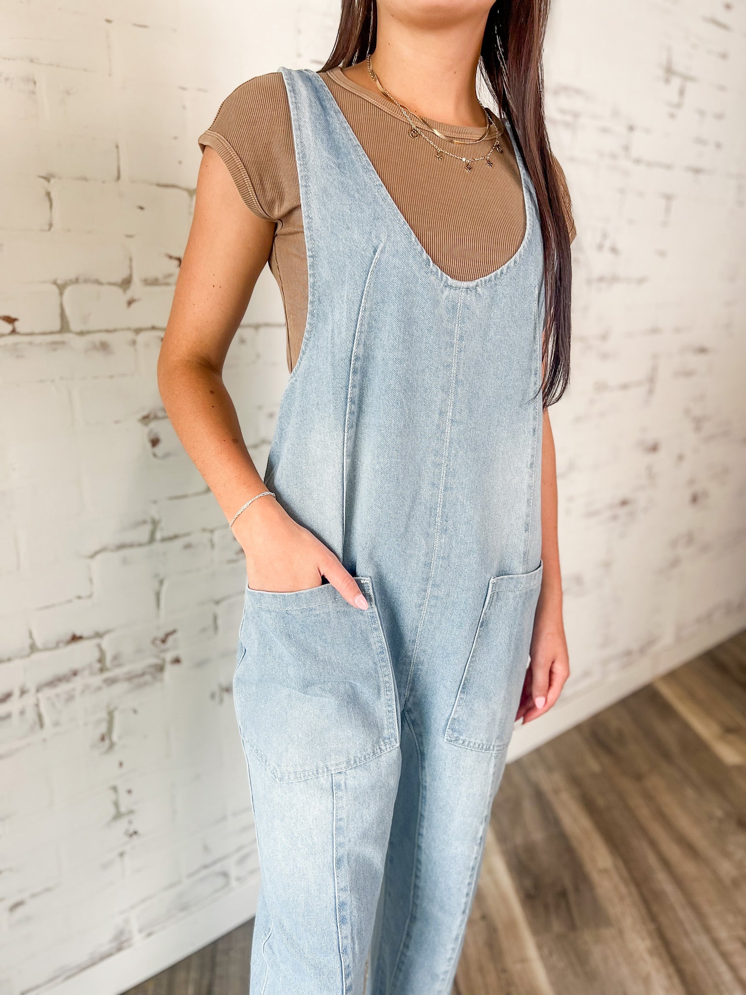 Slouchy, soft, and effortlessly cool—these light wash denim overalls are the definition of weekend ready. With a relaxed fit, deep pockets, and rolled cuffs, they’re perfect for layering and living in year-round.