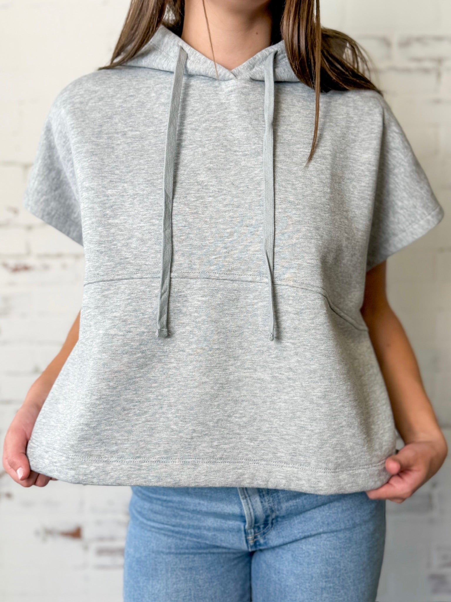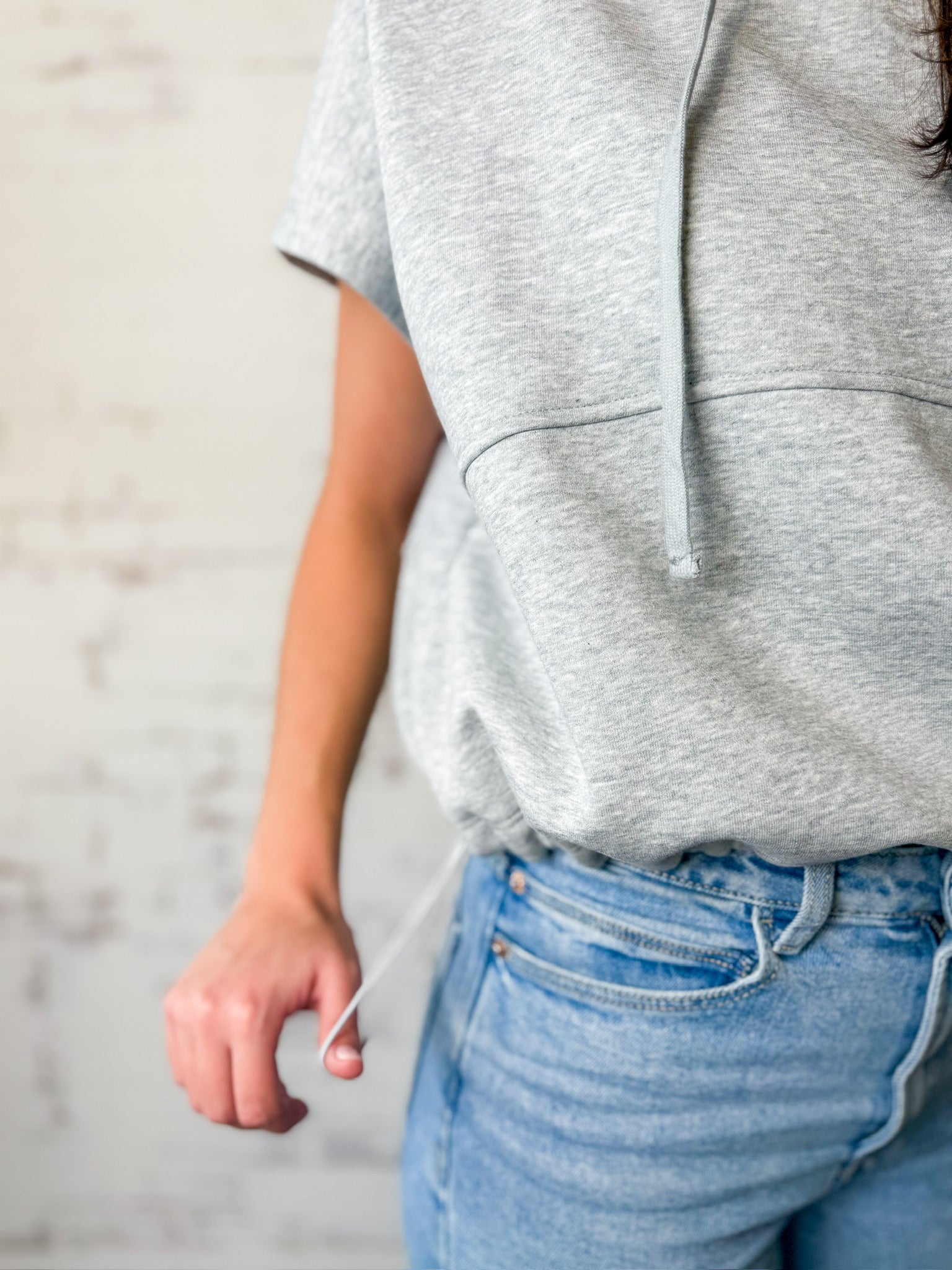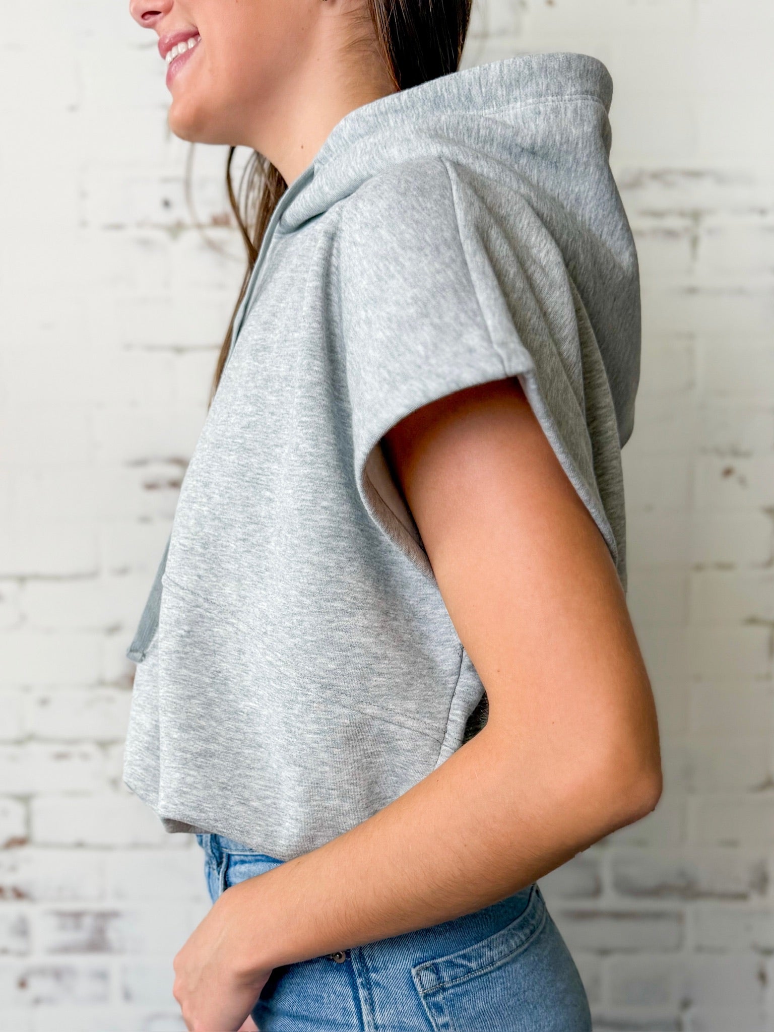 Athleisure meets everyday style with this laid-back sleeveless hoodie. Designed in a soft heather grey knit, it’s perfect for layering over tanks and tees or wearing solo with jeans and sneakers. The relaxed fit and drawstring hood make it both sporty and chic — an easy grab-and-go piece for coffee runs, errands, or casual weekends.