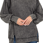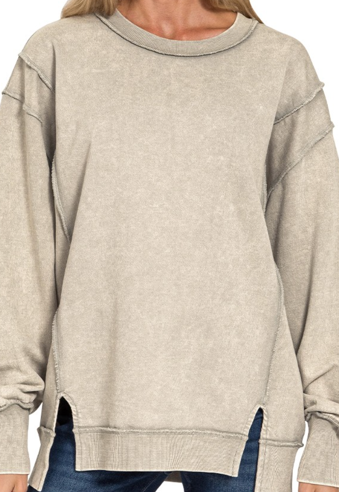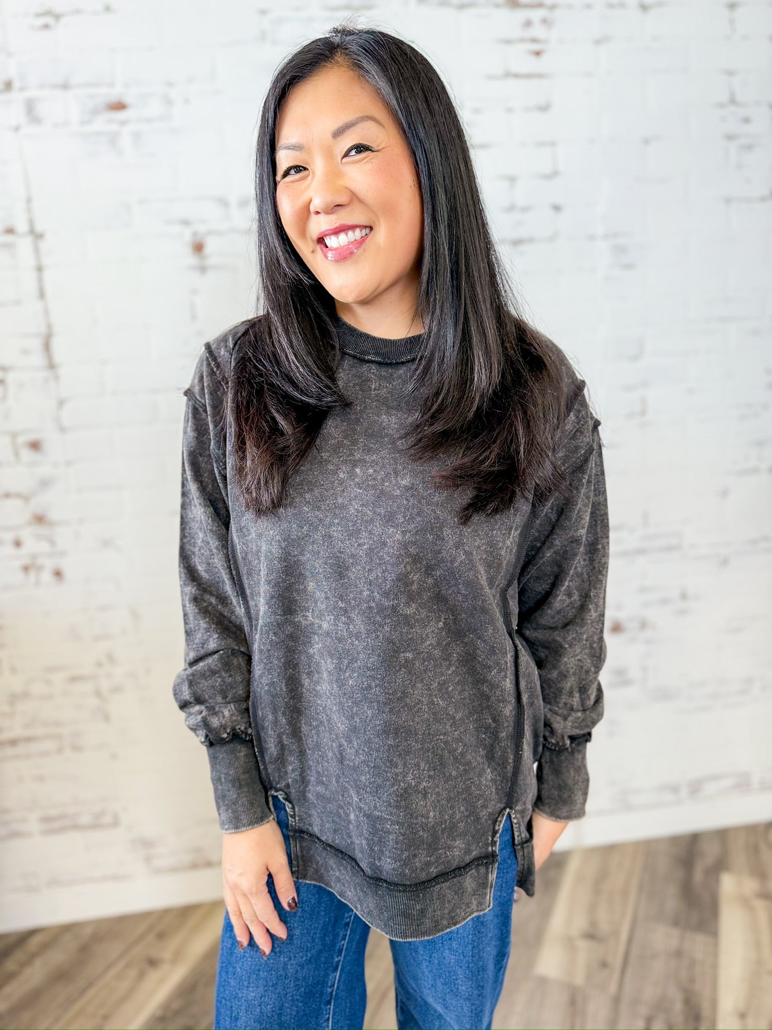 A laid-back essential with a little edge. This washed 100% cotton crewneck features a relaxed oversized fit, raw seam detailing, and subtle side slits for an easy, flattering drape. The mineral-washed finish gives it that perfectly lived-in vibe you’ll want to wear on repeat — from coffee runs to cozy nights in.
