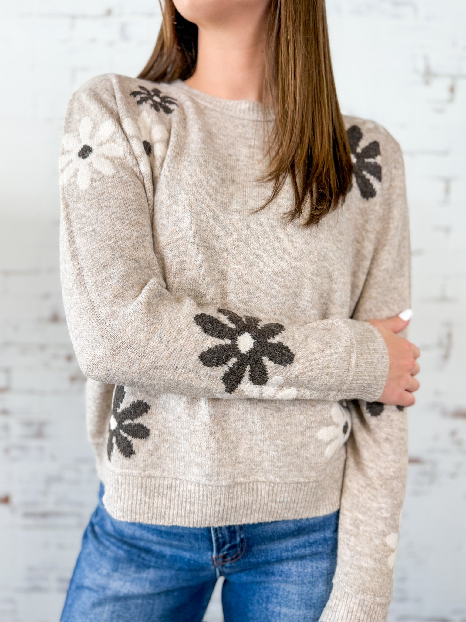 Bring a little happy into your wardrobe with this sweet floral knit. Soft, cozy, and playful, it’s the perfect piece to brighten up chilly days.