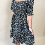 Flirty, feminine, and oh-so-effortless—this floral midi is perfect for brunch, family photos, or an afternoon wedding. The smocked bodice and flowy skirt make it as flattering as it is comfortable.