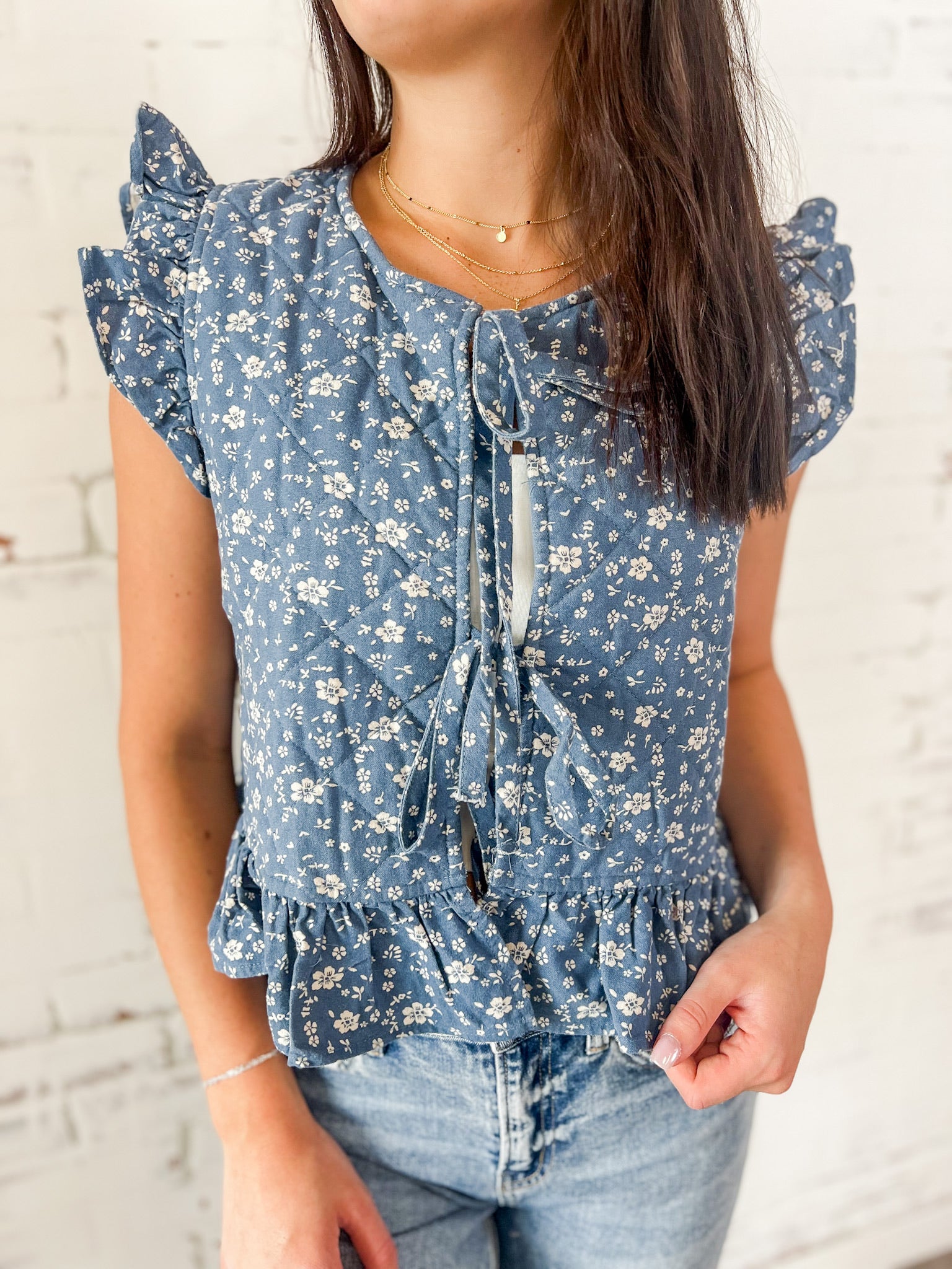 Sweet, feminine, and just the right amount of flirty. This floral tie-front top features ruffled sleeves, a peplum hem, and delicate details that make it a standout piece for spring and summer. Chloe is 5'7" wearing a size small, and the fit is true to size.