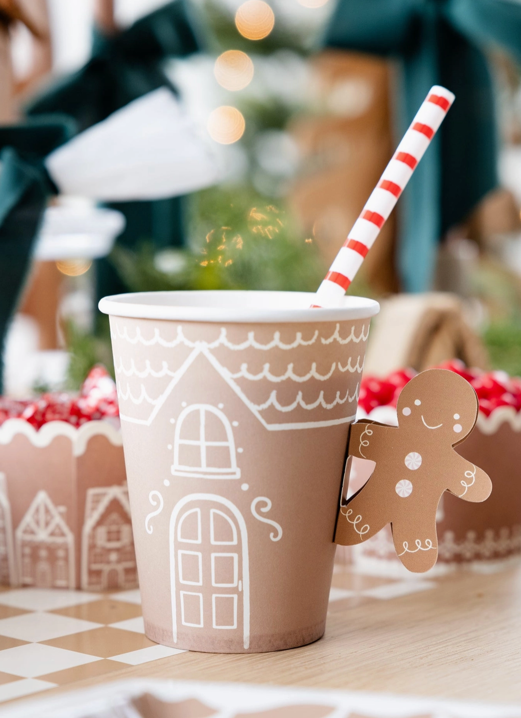 Sweeten up your holiday party with our Gingerbread Handled Paper Cup! Made with a festive gingerbread handle, this cup brings a fun twist to your drinks. Perfect for any gingerbread-themed party, spread the joy with this whimsical addition. • 12 oz party cups • 8 cups • 8 adhesive handles
