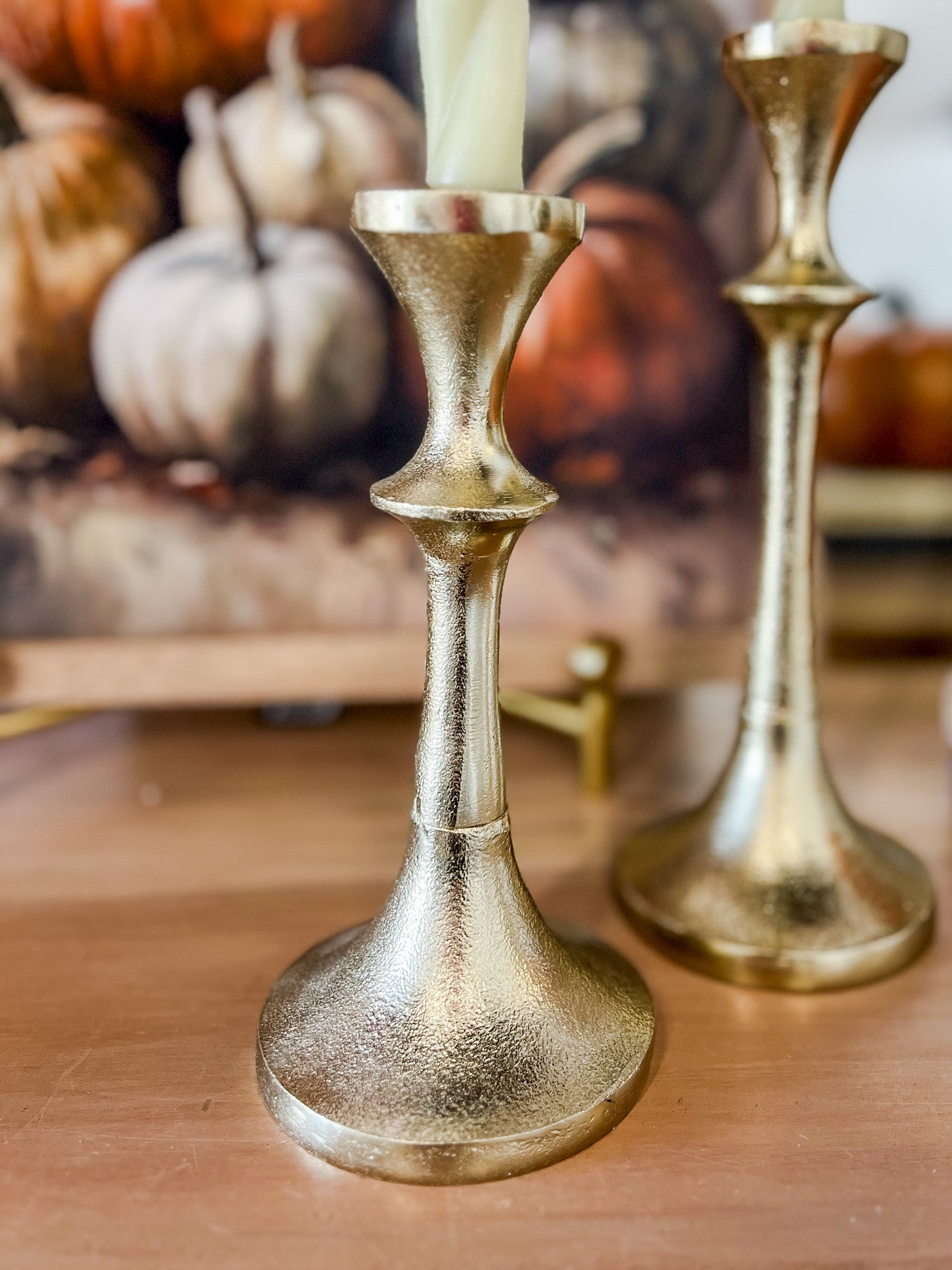 A touch of glam without the fuss. These Brushed Gold Taper Holders elevate any tablescape or shelf with their tall, sculpted silhouettes and textured finish. Just add your favorite seasonal tapers for an instant glow-up.