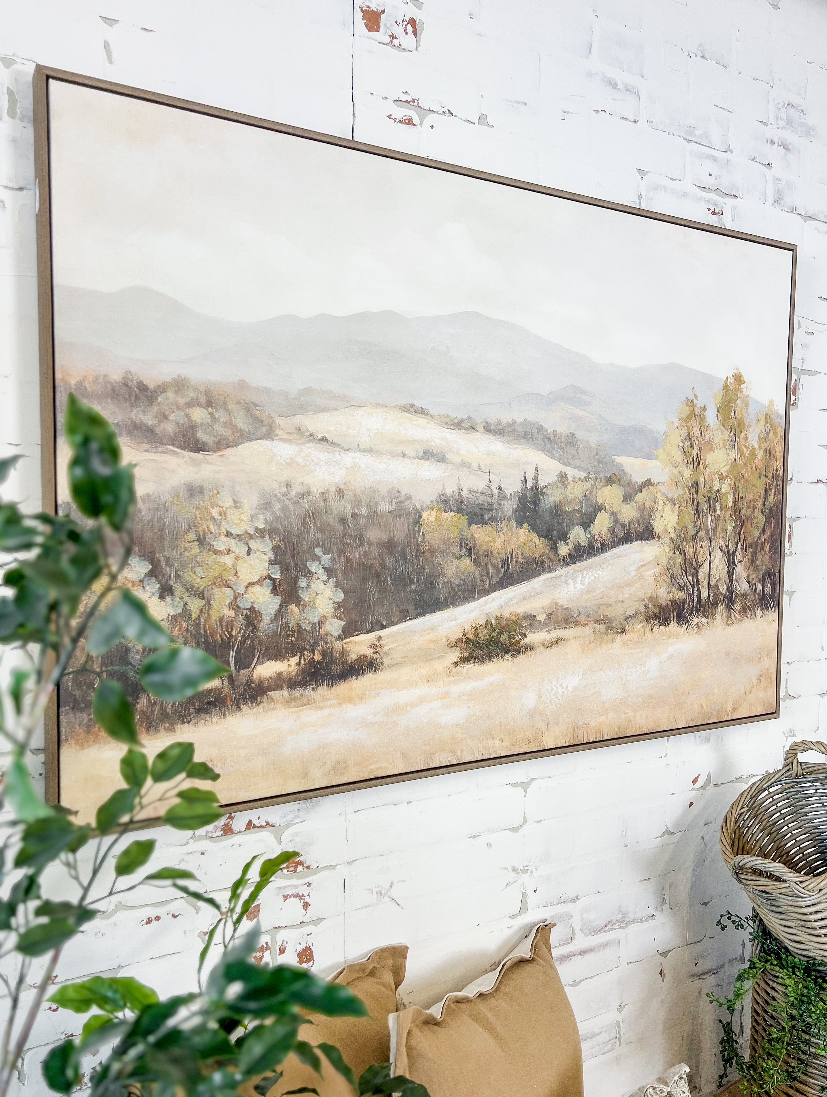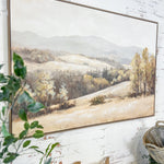 Rolling hills and warm tones bring a sense of openness and ease. This wood-framed canvas feels inviting and familiar — perfect for creating a relaxed, lived-in look.