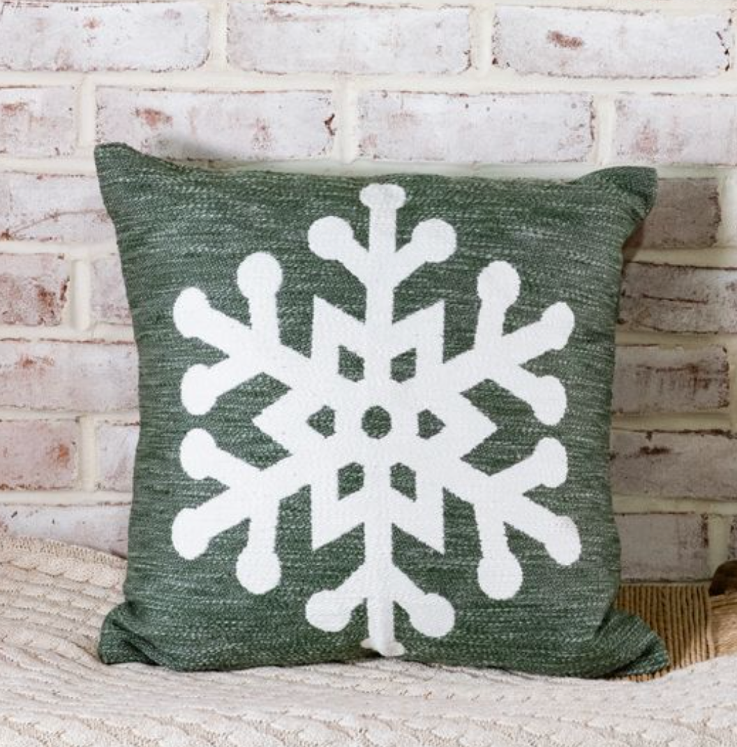 18" Green Snowflake Pillow