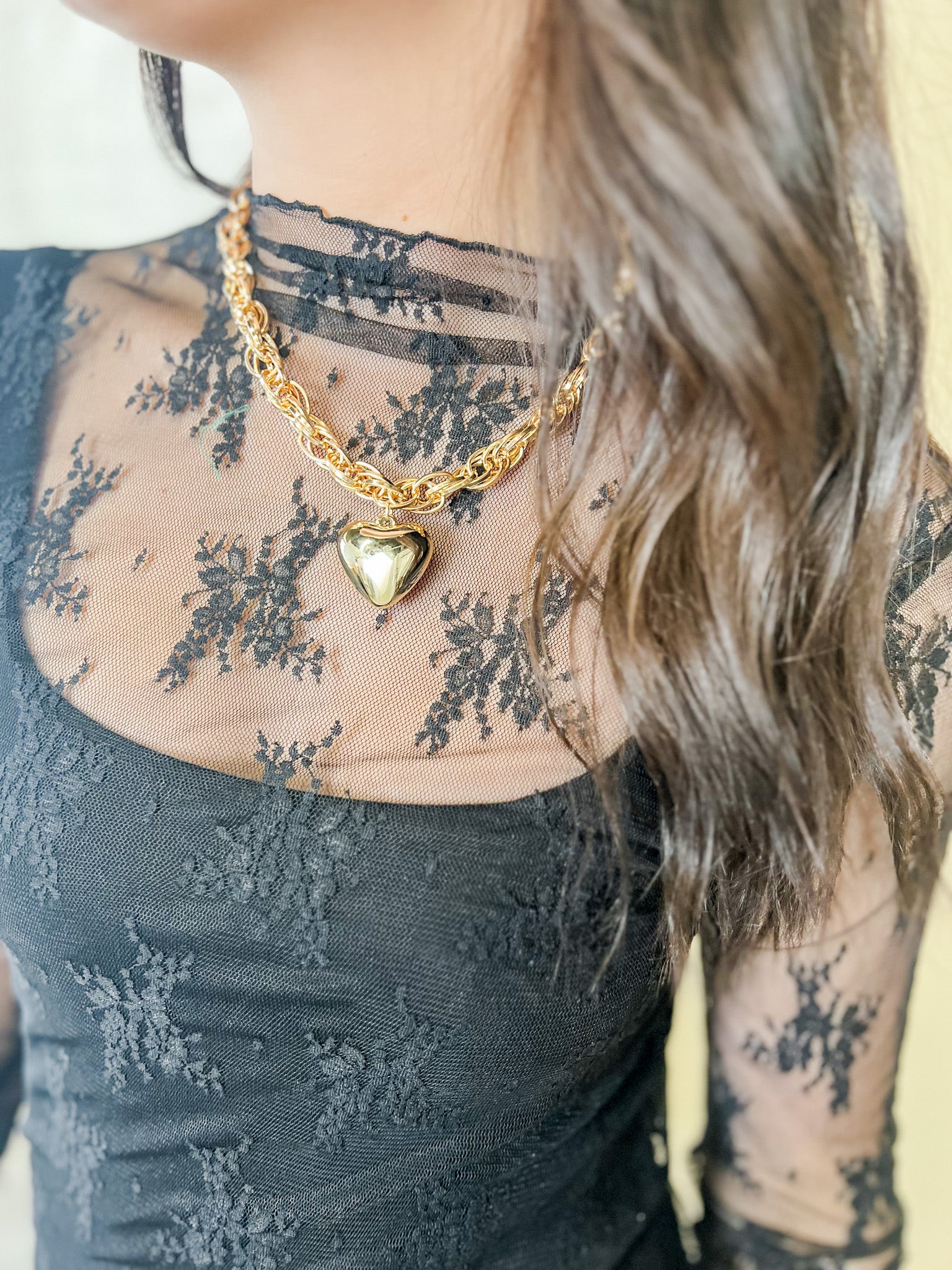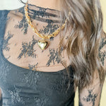 This statement heart pendant necklace is the perfect mix of bold and feminine — the kind of piece that instantly dresses up any outfit. The chunky twisted chain gives it that luxe, high-end feel, while the polished heart charm adds just the right touch of romance.