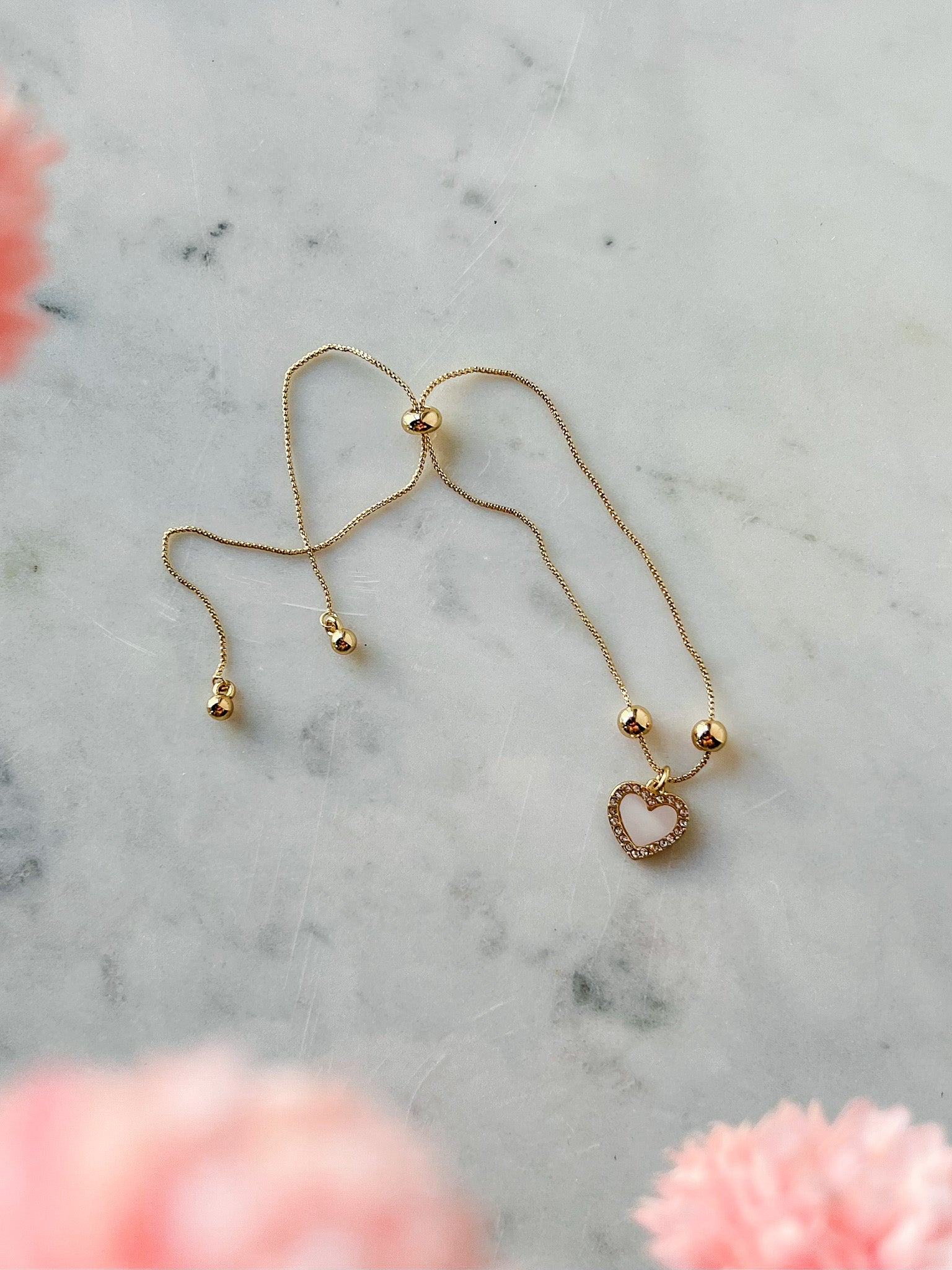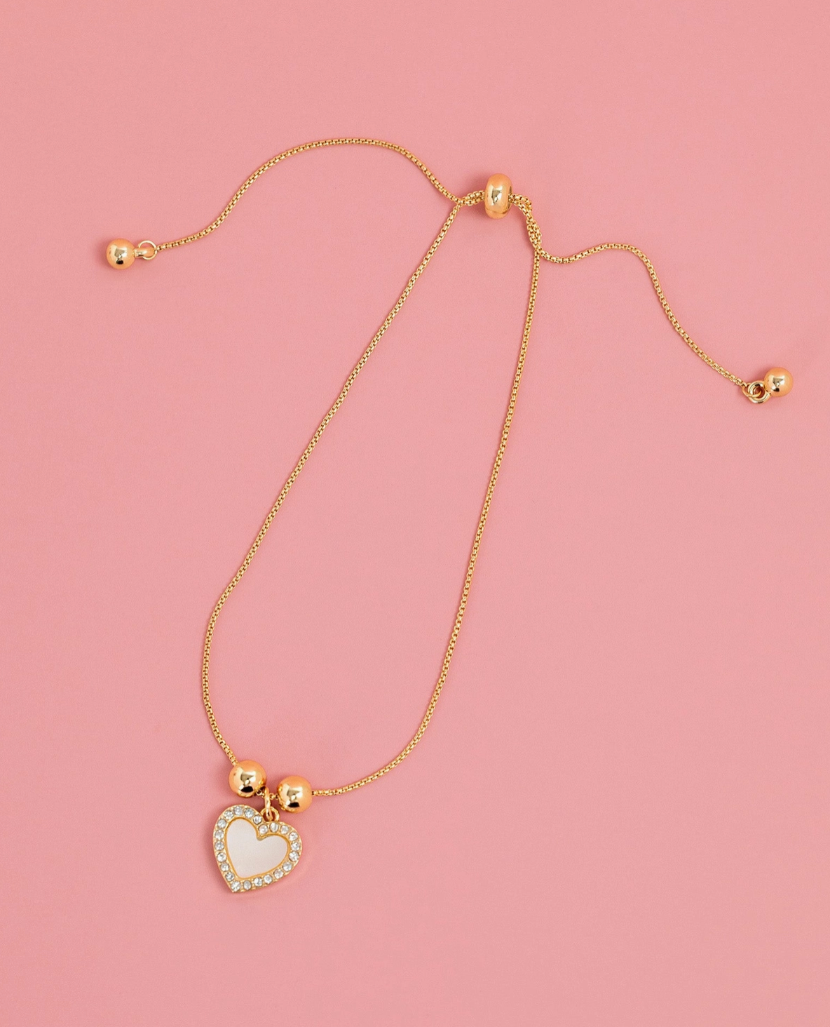 Sweet with just the right amount of shine, this bracelet is an easy favorite. A sparkling open heart charm hangs delicately from a slim gold chain, finished with a pull-tie closure that lets you customize the fit effortlessly.