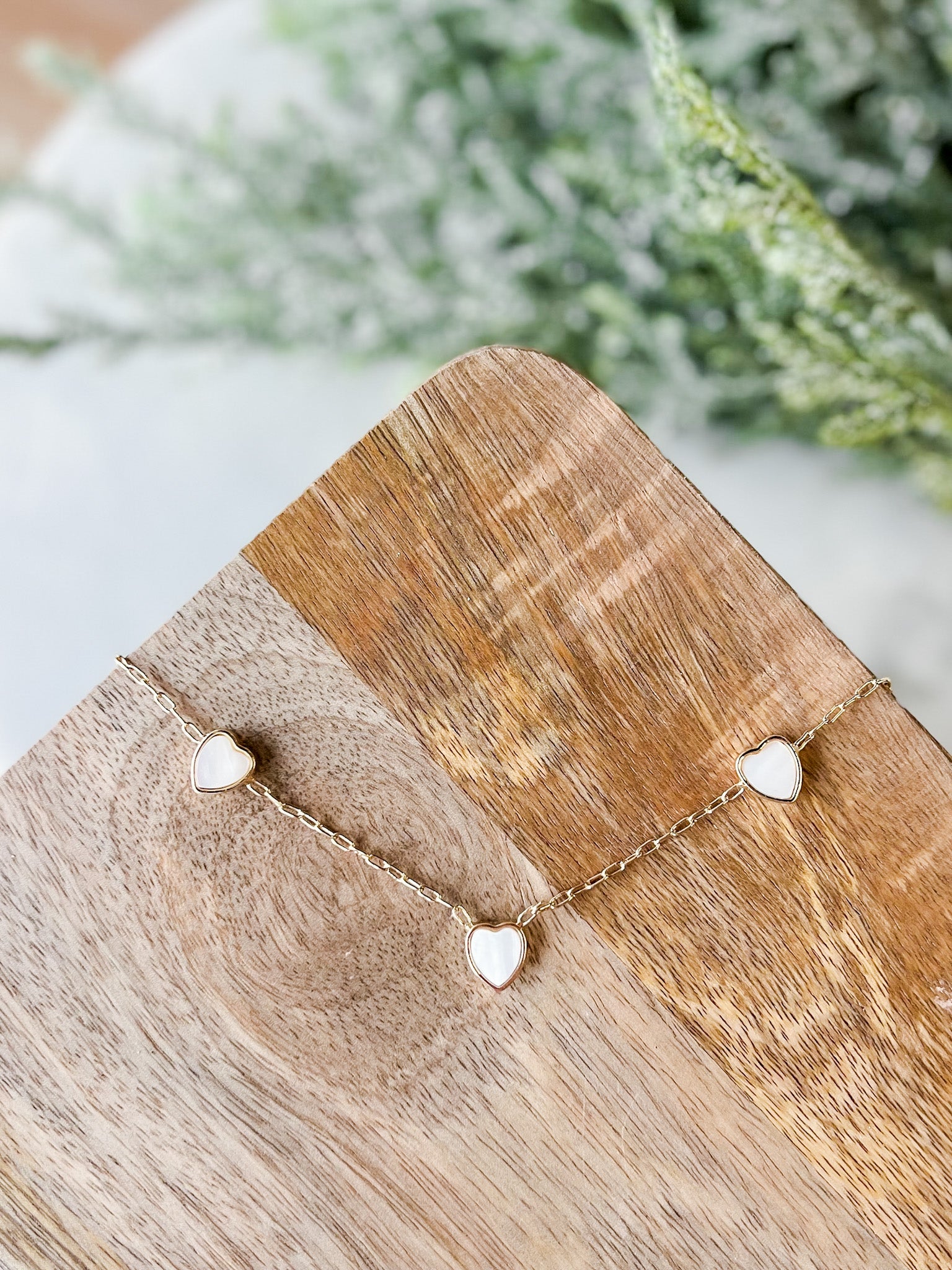 A dainty chain lined with petite white hearts—romantic yet minimal, it’s an everyday favorite with just the right touch of charm.
