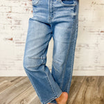 The cropped length pairs perfectly with sneakers sandals or booties making them easy to style through every season. With a soft medium wash and finished hem these are the jeans you’ll reach for when you want something effortlessly cool but still versatile enough for work errands and weekend plans.