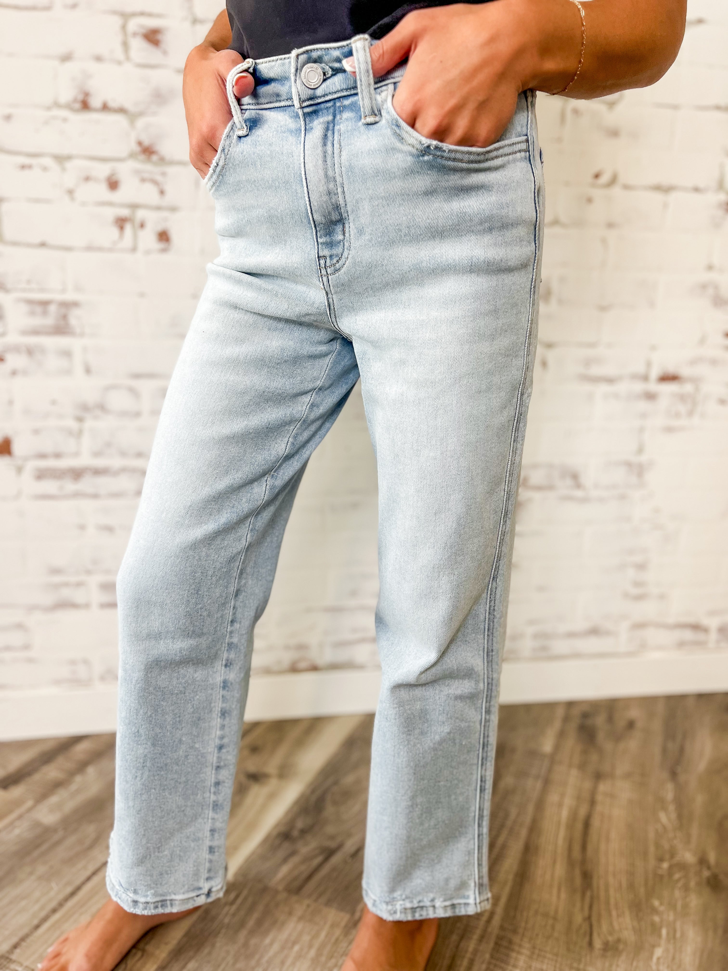 The slim wide leg silhouette creates a confident, balanced shape that feels elevated yet relaxed. Throw on a fitted tank for warmer days or pair with a soft sweater when the temps dip. These are the jeans that fit your lifestyle whether you're working on the go or enjoying a slow Saturday.