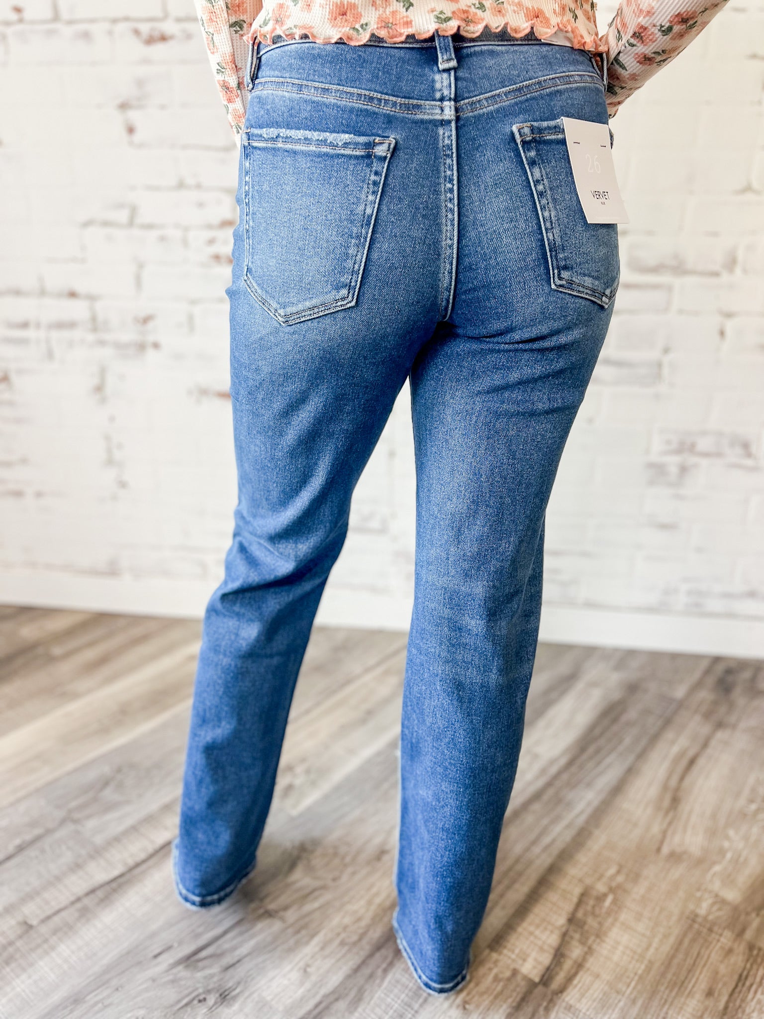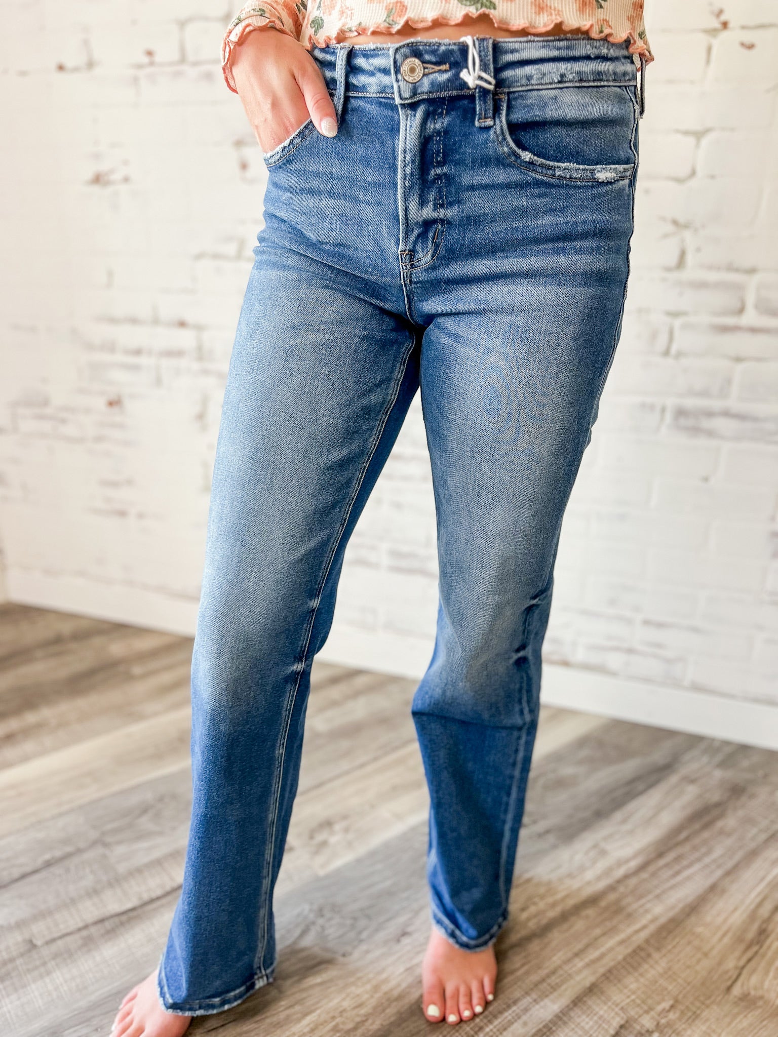 Timeless, versatile, and always flattering. These high-rise straight leg jeans are the denim you’ll reach for again and again. The medium wash makes them easy to dress up or down, while the comfy stretch keeps you moving all day.