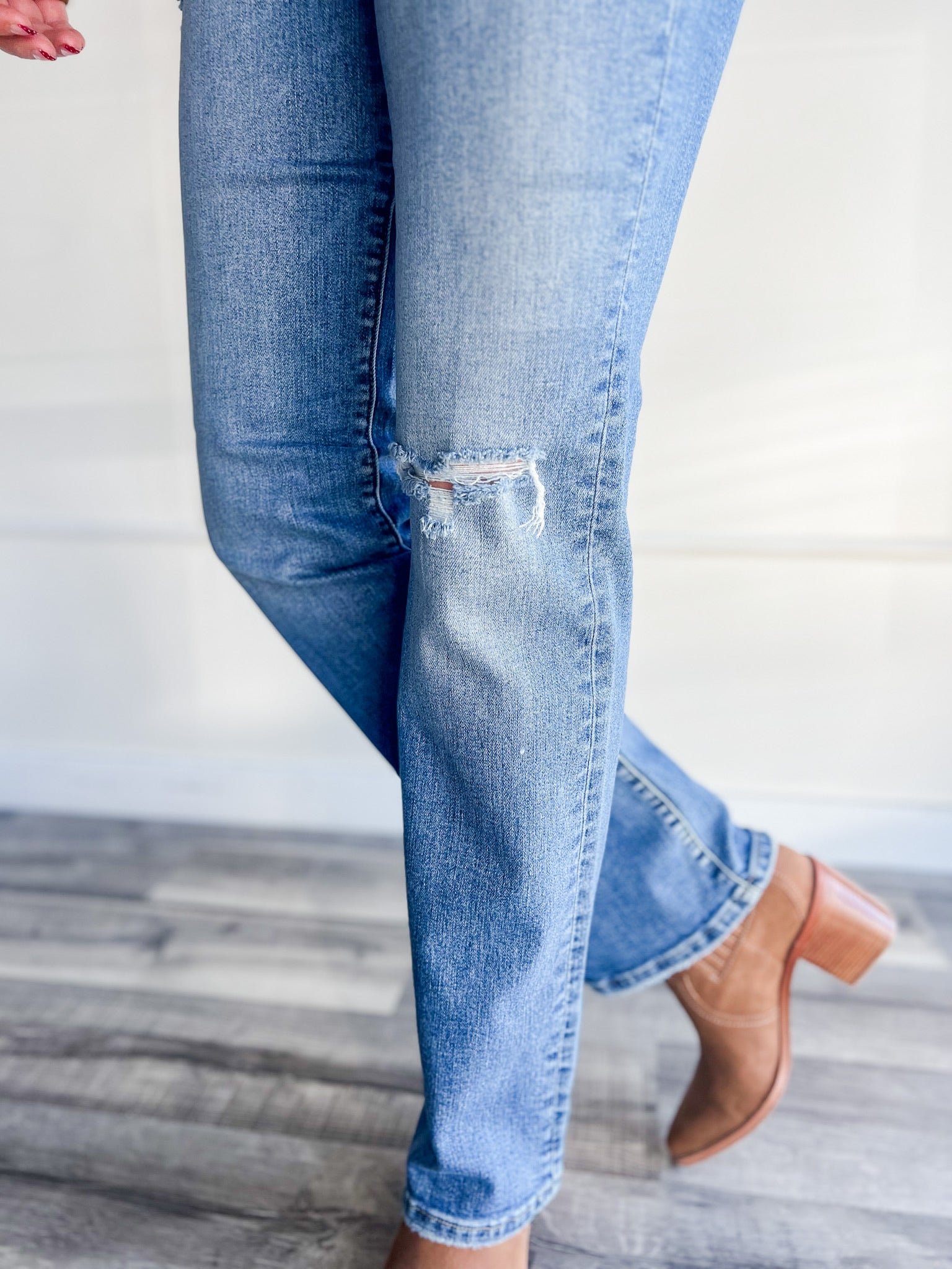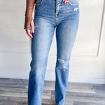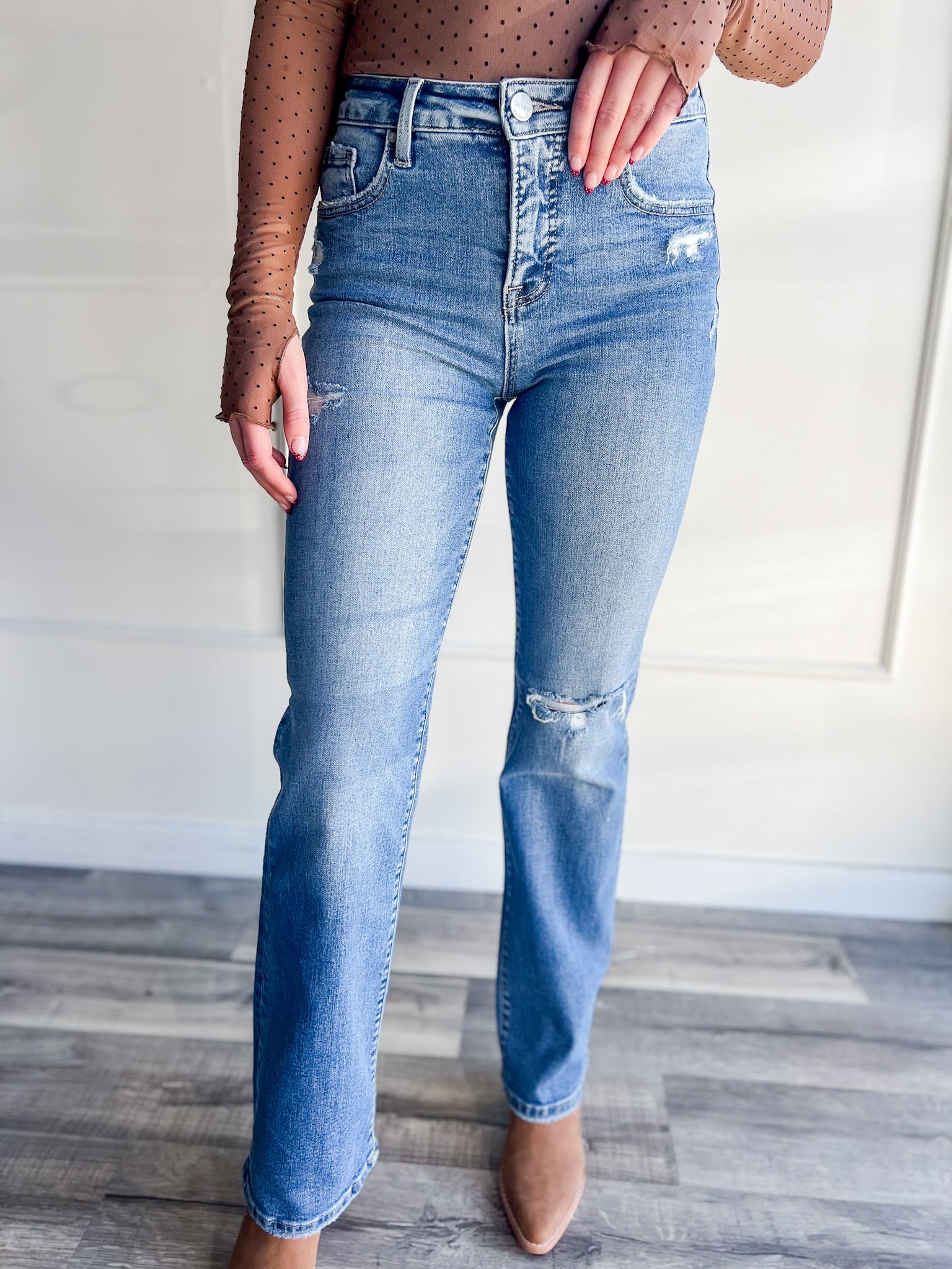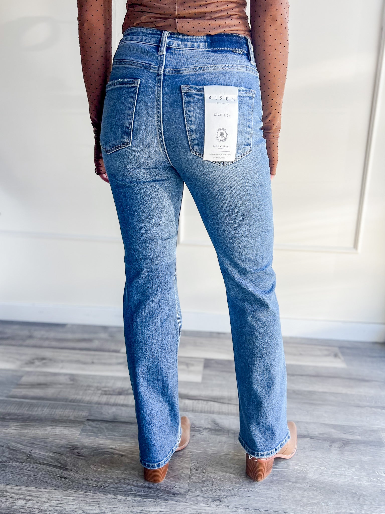 Your go-to denim just got a little more personality. The Risen Distressed Straight Leg Denim offers a flattering high-rise fit, light wash, and just the right amount of distressing for that effortless “cool without trying” vibe. Soft, stretchy, and easy to style, these jeans transition perfectly from weekday errands to weekend outings.