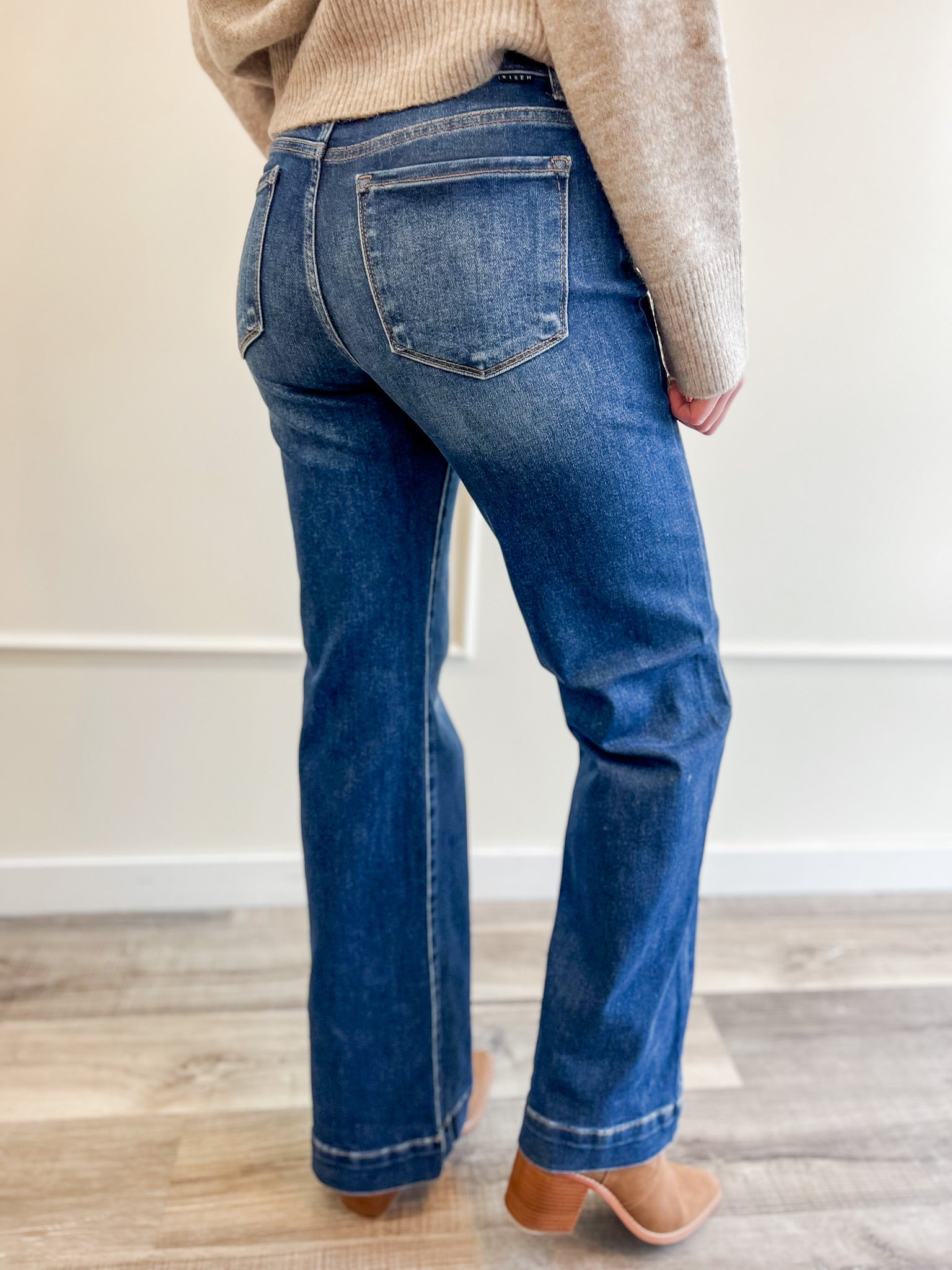A classic full-length bootcut with the perfect medium wash and an ultra-flattering, easy stretch. A timeless silhouette that pairs with everything in a busy mom’s closet.