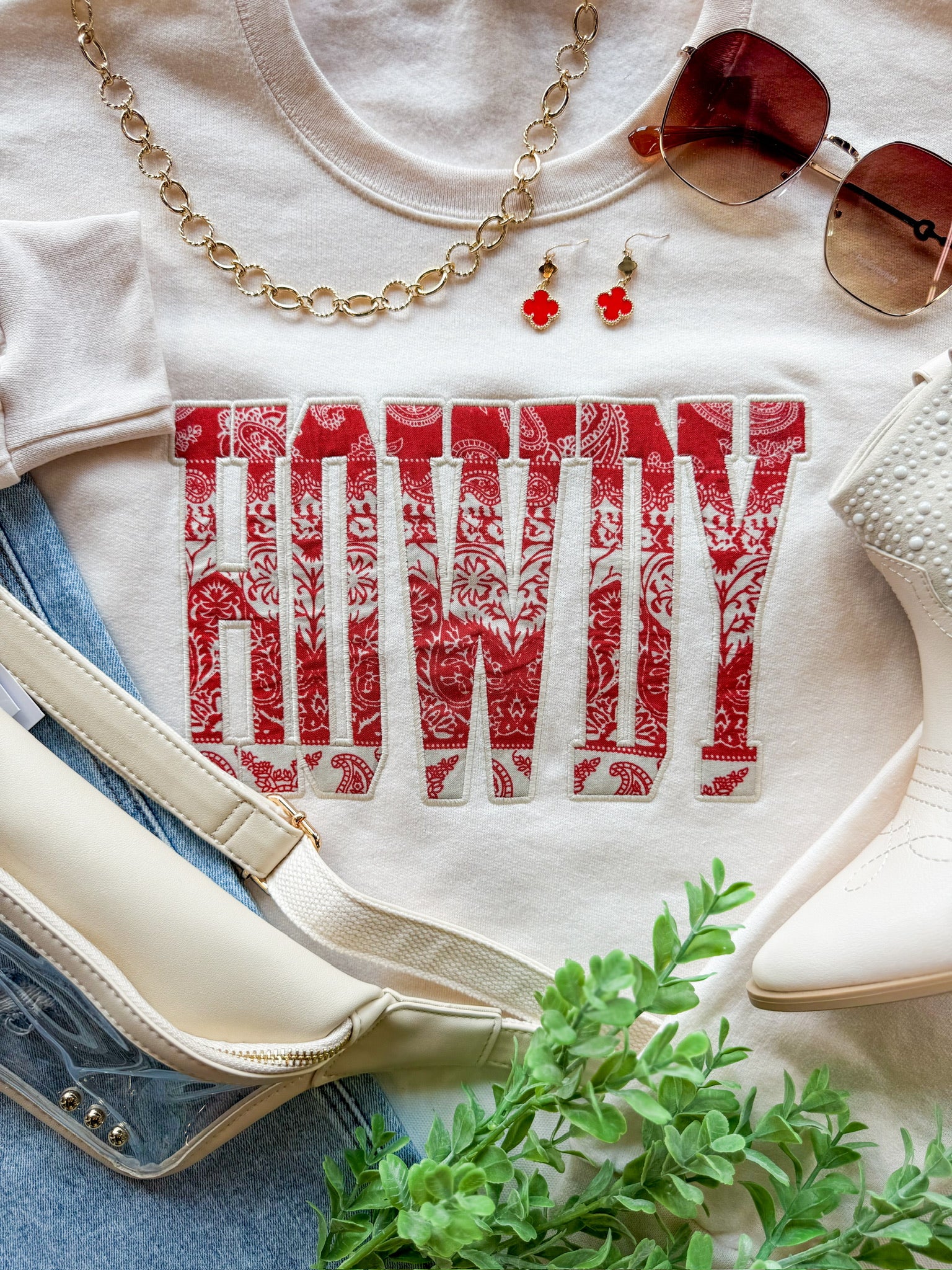 This graphic sweatshirt is ready to bring all the rodeo energy with none of the dust. The bold red bandana print gives Southern flair a playful twist, and the soft, mid-weight fabric makes it perfect for layering on cooler fair nights. Toss it on with denim, boots, and a funnel cake in hand — it’s a whole look.