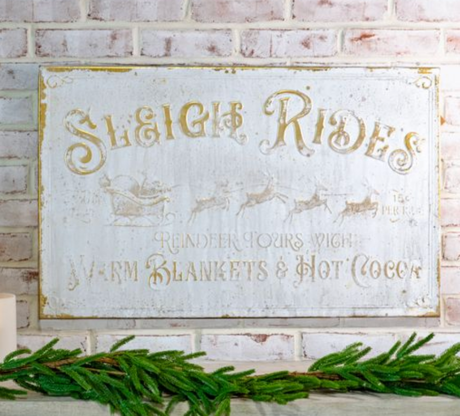 Vintage White Sleigh Rides Sign