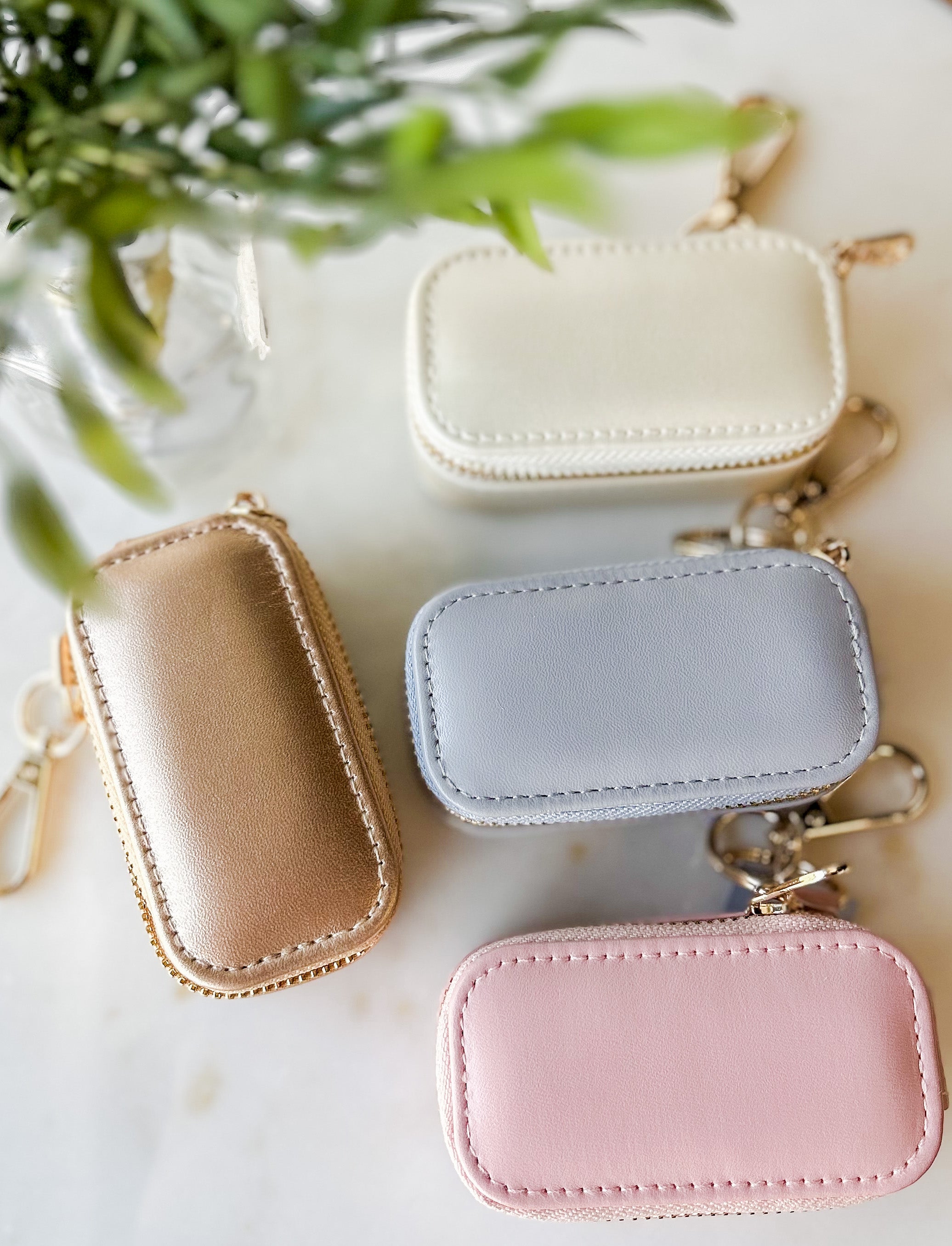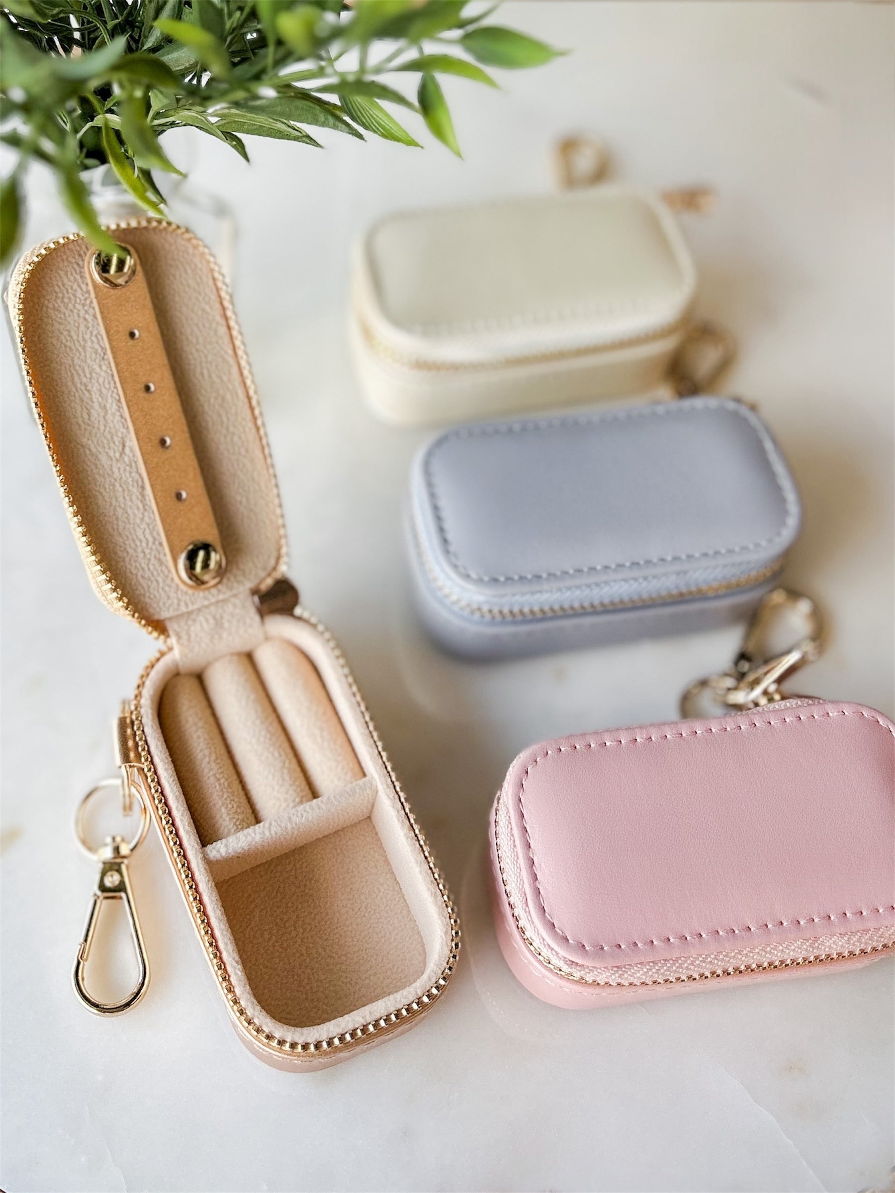 Keep your sparkle safe wherever you go with our Compact Travel Jewelry Case—a chic little lifesaver for every trip, tote, or handbag. Designed with a soft velvet interior, zip closure, and built-in ring holder, it keeps your favorite pieces secure, untangled, and ready to wear. Bonus points for the sleek color options and keychain clip that make it as pretty as it is practical.