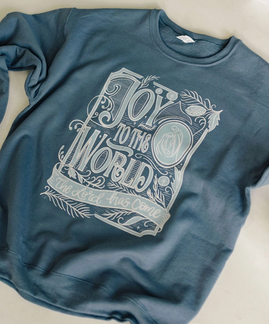 Celebrate the season in style with our Joy to the World Crewneck—a soft, faith-filled reminder of the reason for the season. Featuring elegant hand-lettered artwork and a nativity-inspired design, this cozy blue sweatshirt is perfect for caroling, cocoa sipping, or simply soaking in the joy of Christmas.