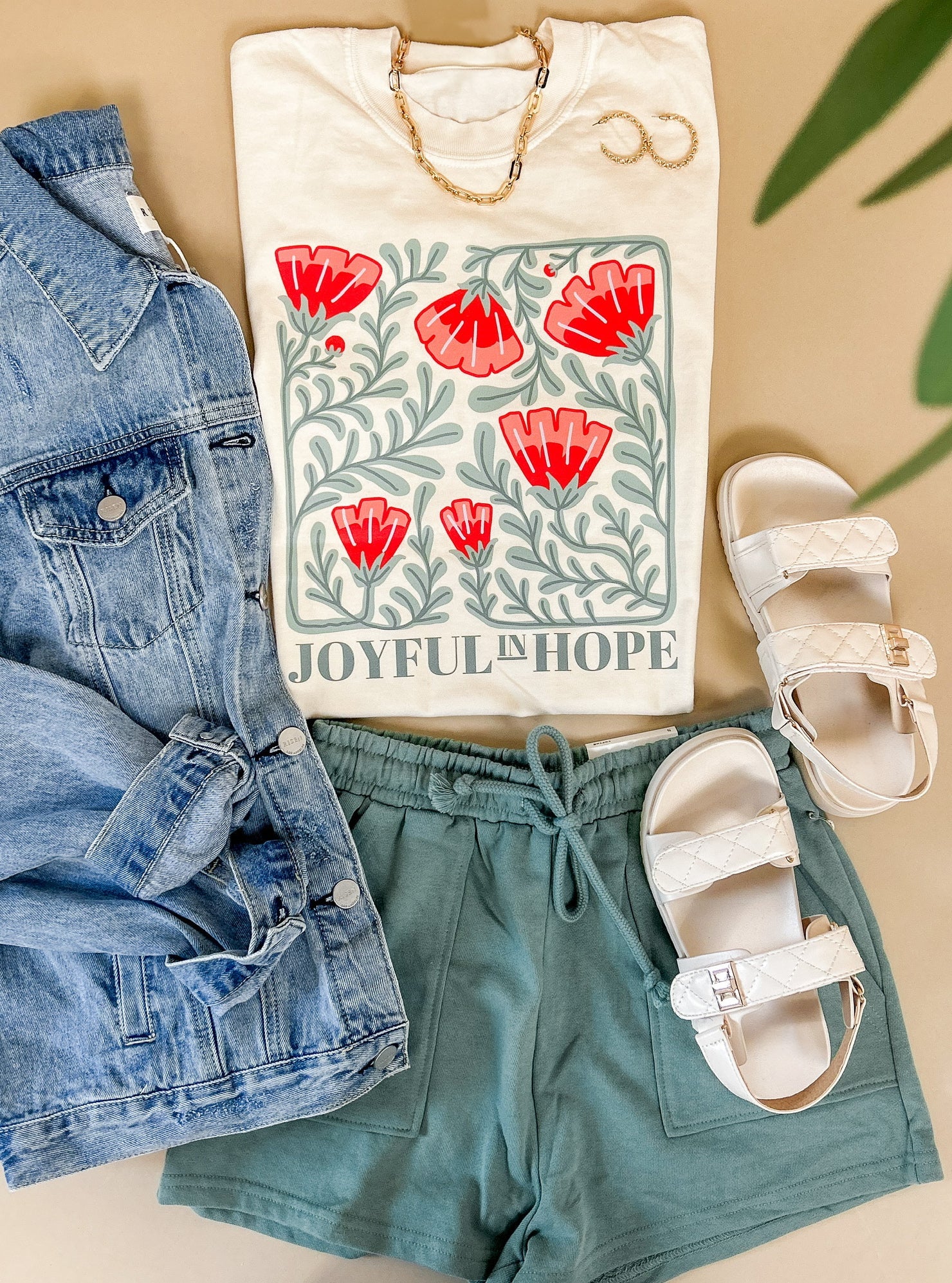 A little color, a little encouragement, and a whole lot of charm. The Joyful in Hope Floral Graphic Tee features a cheerful floral illustration paired with a meaningful reminder to stay joyful in hope. The soft cotton feel and relaxed fit make it an easy everyday piece you’ll love styling with denim, shorts, or layered under your favorite jacket. Whether you’re headed out for errands, meeting friends for coffee, or just want a tee that carries a positive message, this one brings the perfect blend of comfort and inspiration.