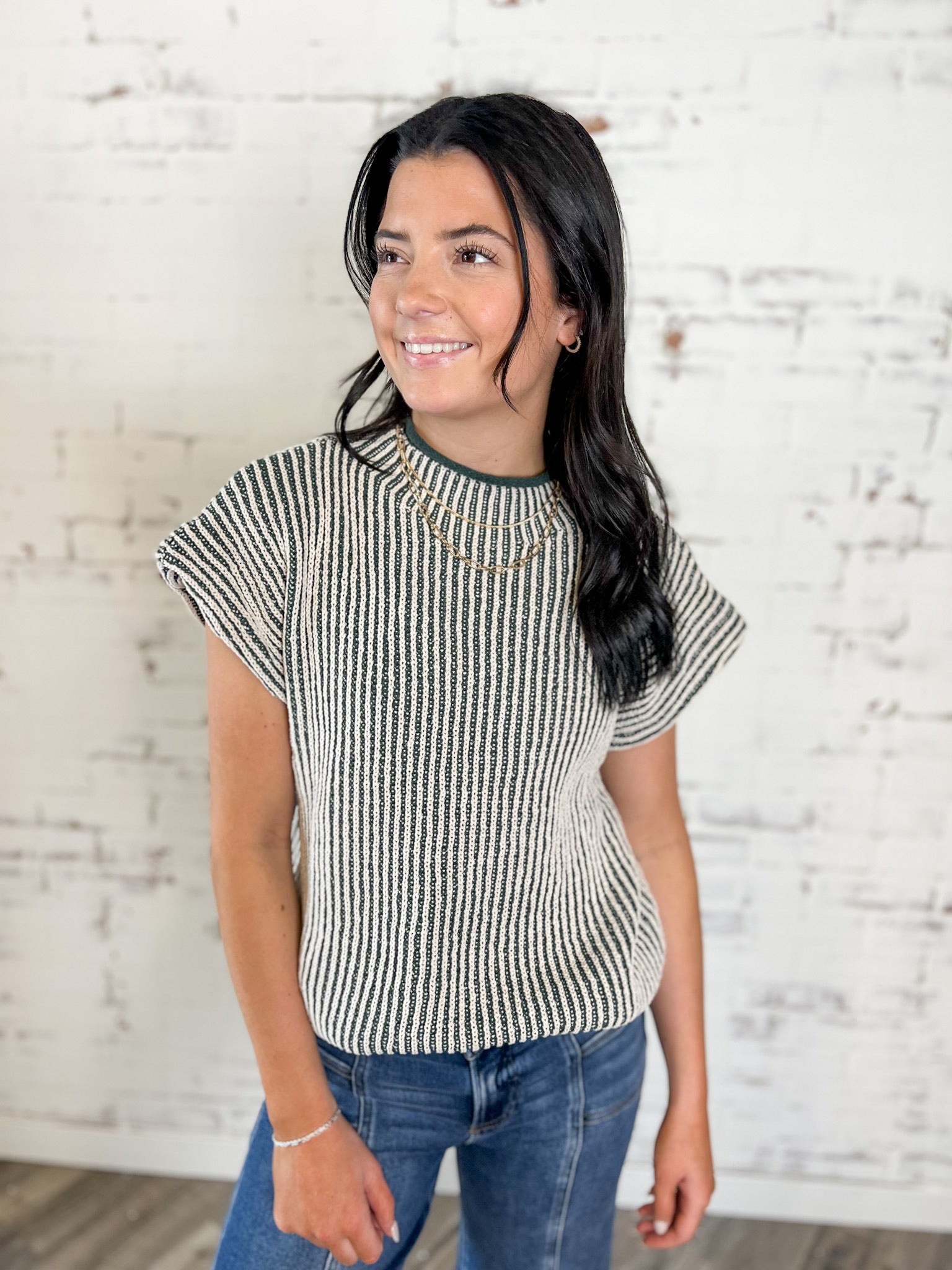 Easy texture, effortless polish, repeat-wear energy! This ribbed knit top is one of those pieces you’ll grab without thinking twice. The subtle stripe texture adds just enough interest while keeping things simple and wearable for everyday life.