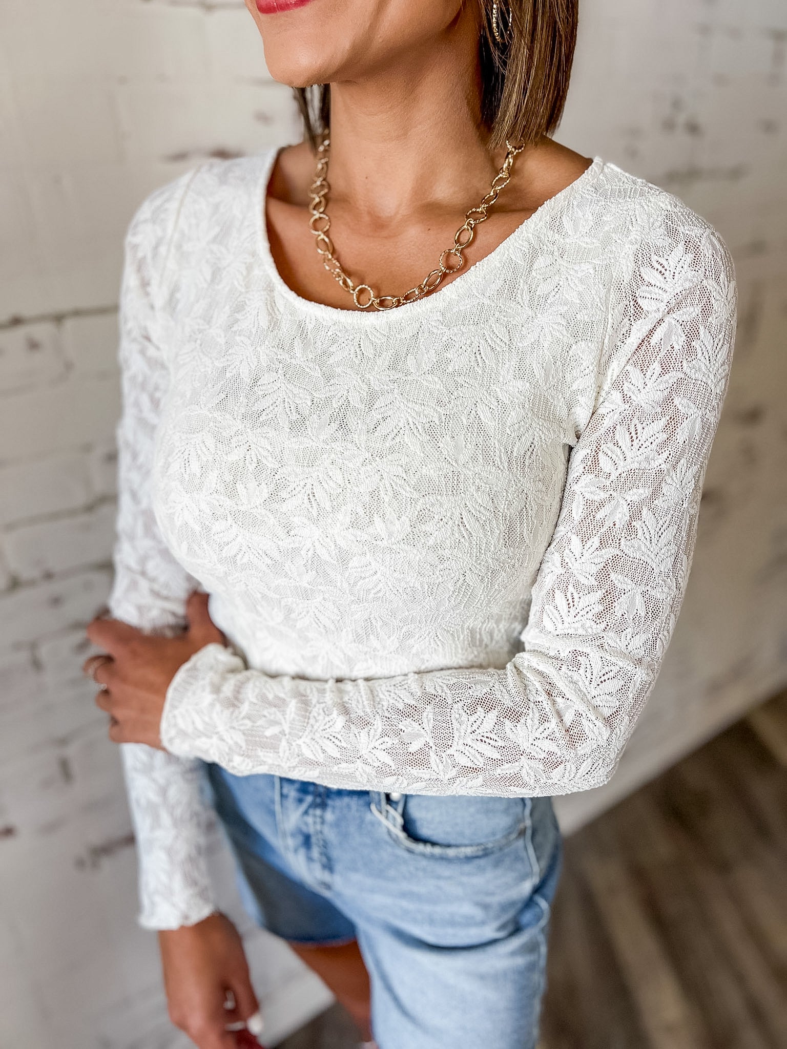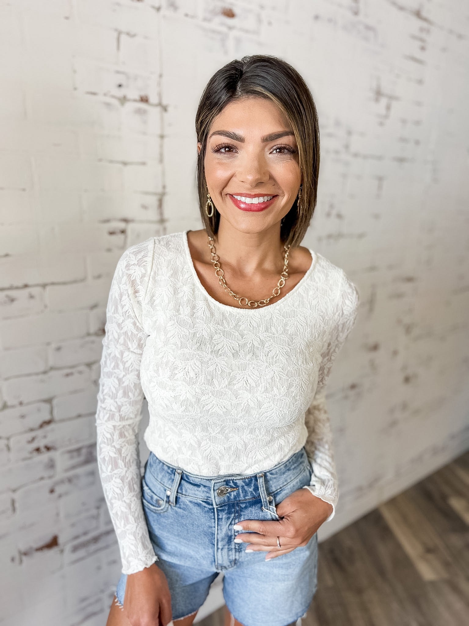 Some pieces just become instant staff favorites, and this lace bodysuit is exactly that. It’s the kind of top that works with everything in your closet — denim shorts, wide leg jeans, skirts or layered under jackets and cardigans. The delicate lace texture adds just enough interest while still feeling timeless and easy to style.