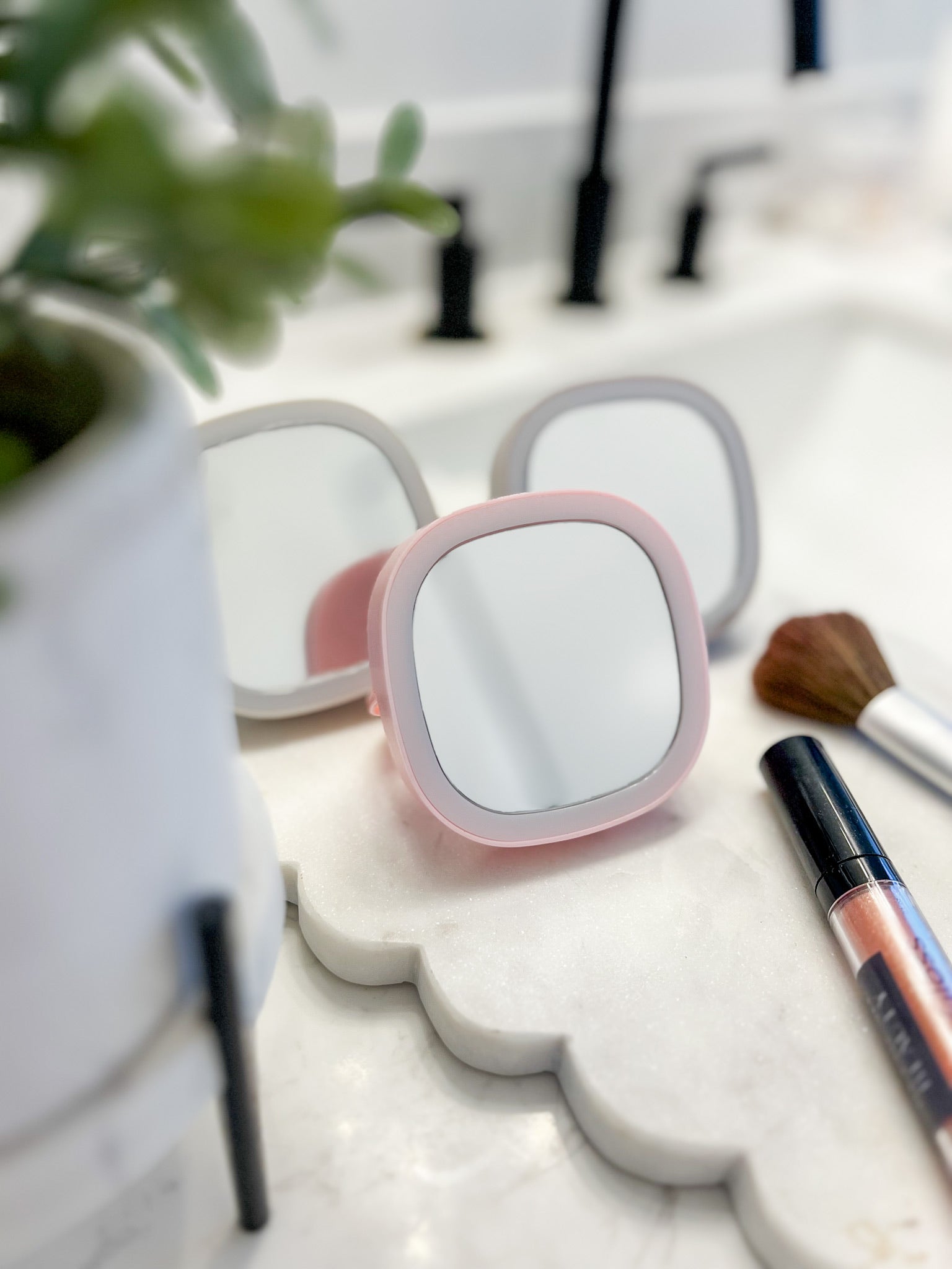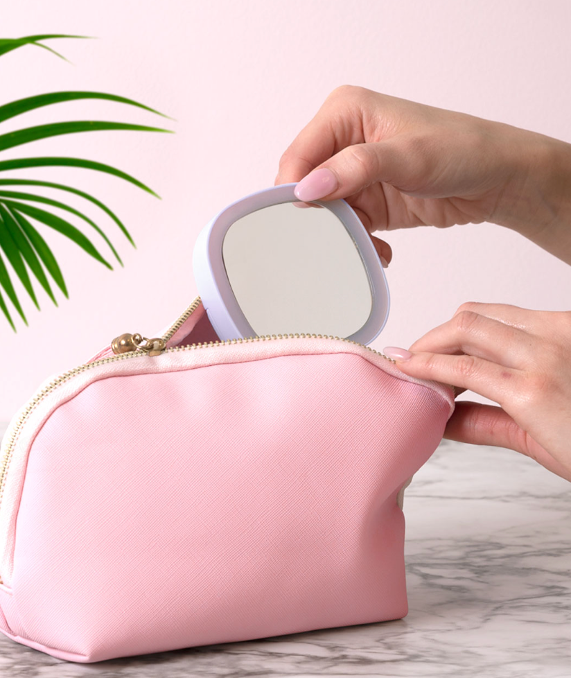 Achieve the same flawless looks at home and on the go with our favorite secret weapon - the mini makeup mirror. Cute and compact, this little life saver glows bright with 12 LEDs, 2 levels of intensity, a pop-out stand and true-to-you magnification.