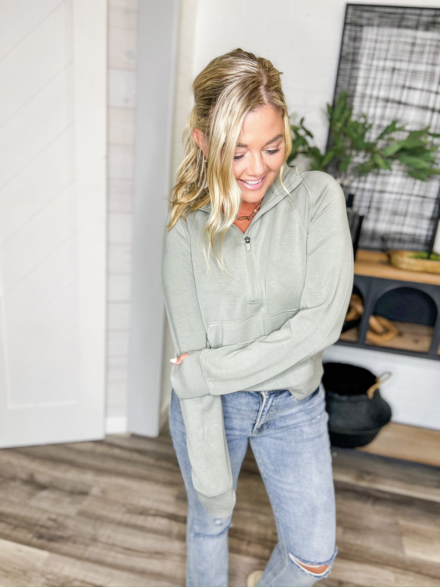 This half-zip hoodie features a front pocket and ribbing at the sides to take your activewear game to the next level! Oh, and did we mention it's ultra comfy, too?!