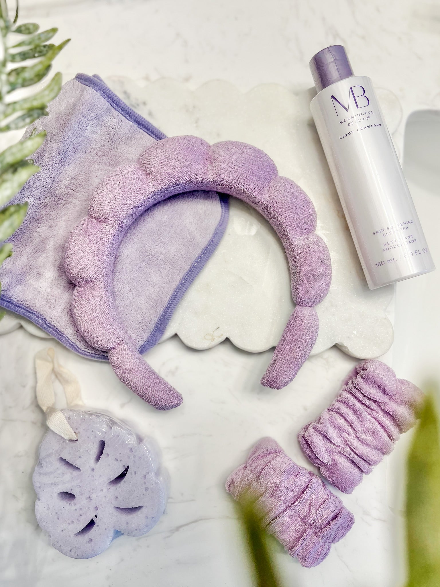 Designed to keep your hair back and shielded from water, skincare and makeup, this soft terrycloth headband comes with two fluffy wristbands to keep your arms nice ‘n dry while washing or rinsing.