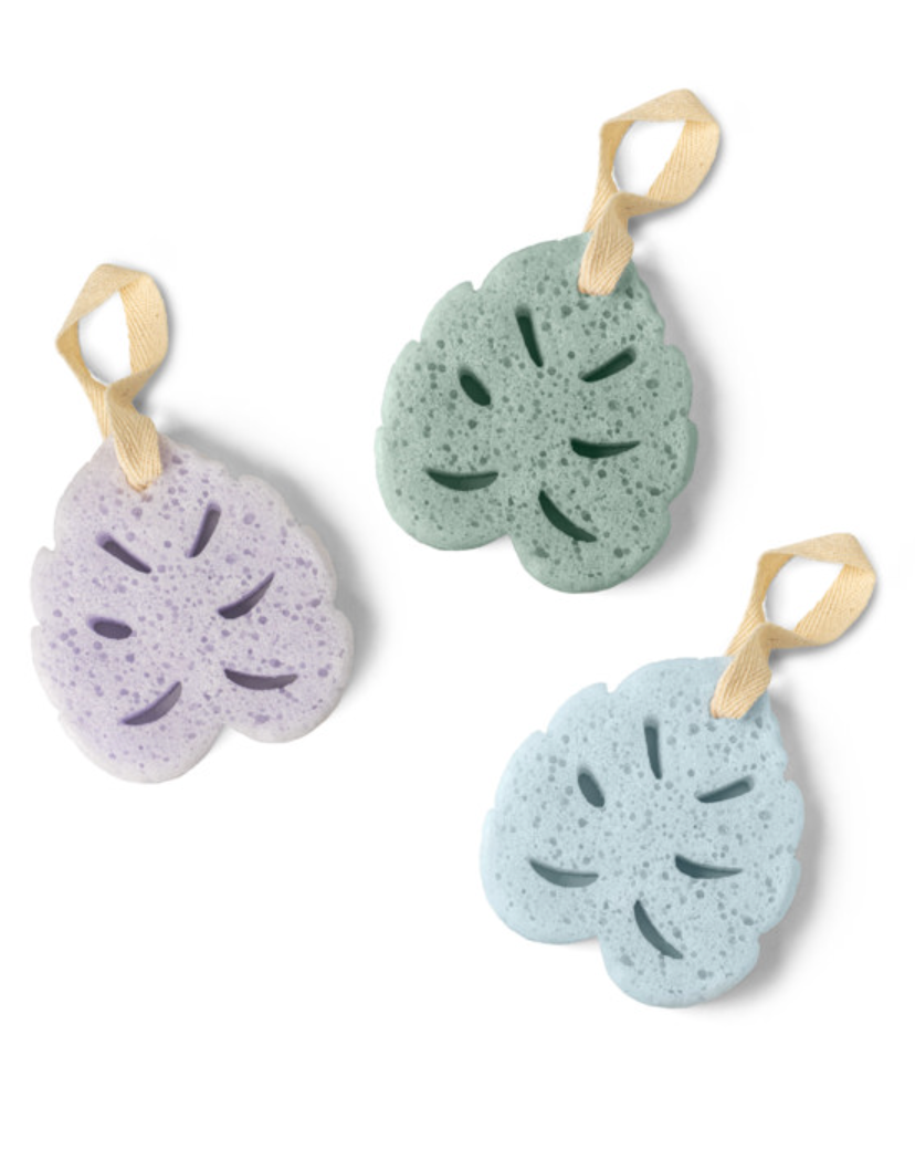 Perfectly textured to buff and polish skin, this leaf-shaped sponge is pre-packed with shea butter soap to make shower routines quicker than ever. Customers can choose from three soothing scents. Great for travel!