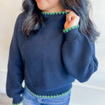Long Puff Sleeve Sweater With Contrast Stitch