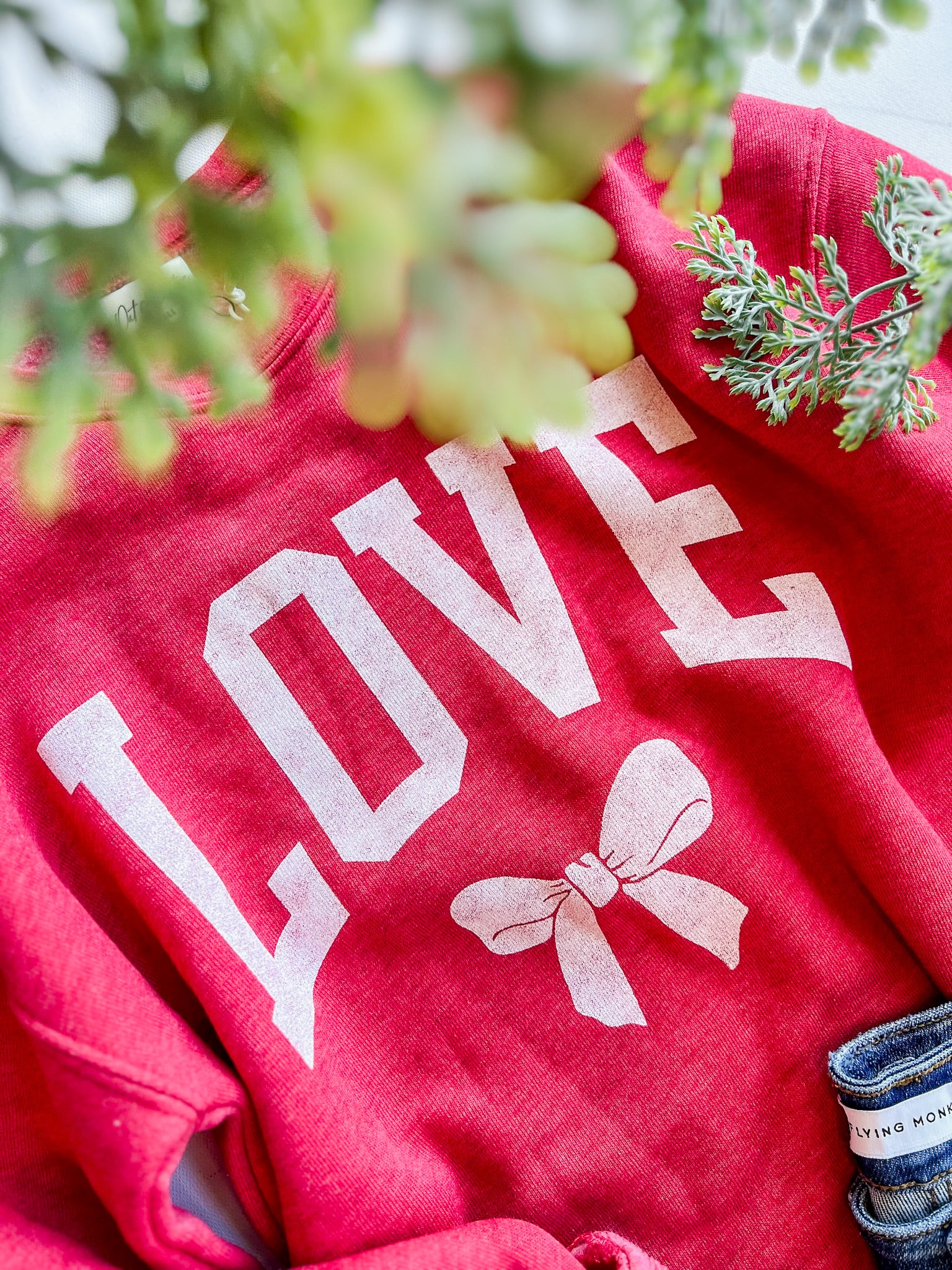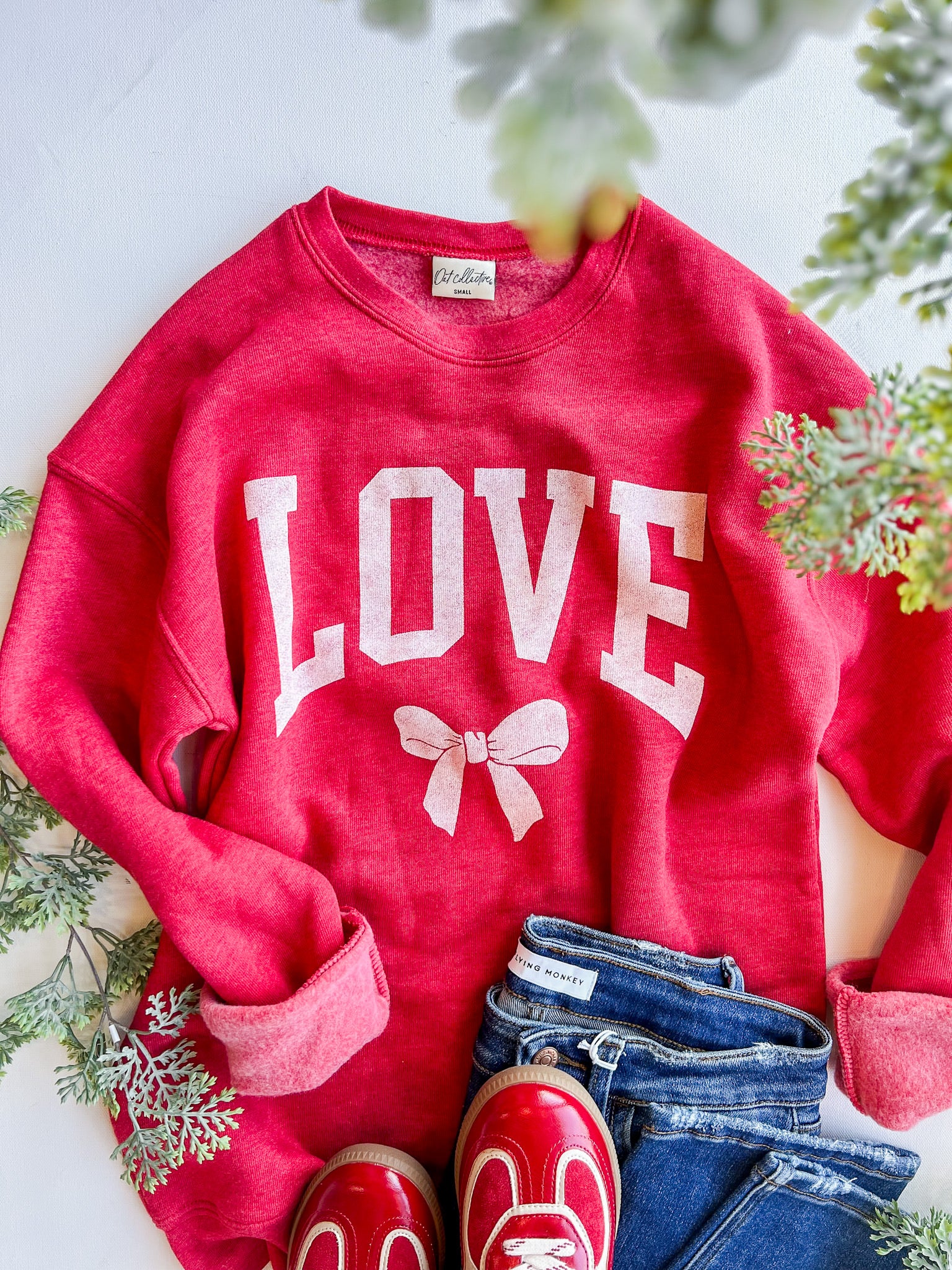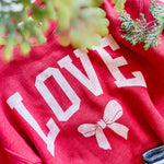 Bold, cozy and full of heart. This red graphic crewneck features oversized LOVE lettering finished with a bow detail that feels playful and classic all at once. It’s the ultimate statement sweatshirt for Valentine season and beyond.