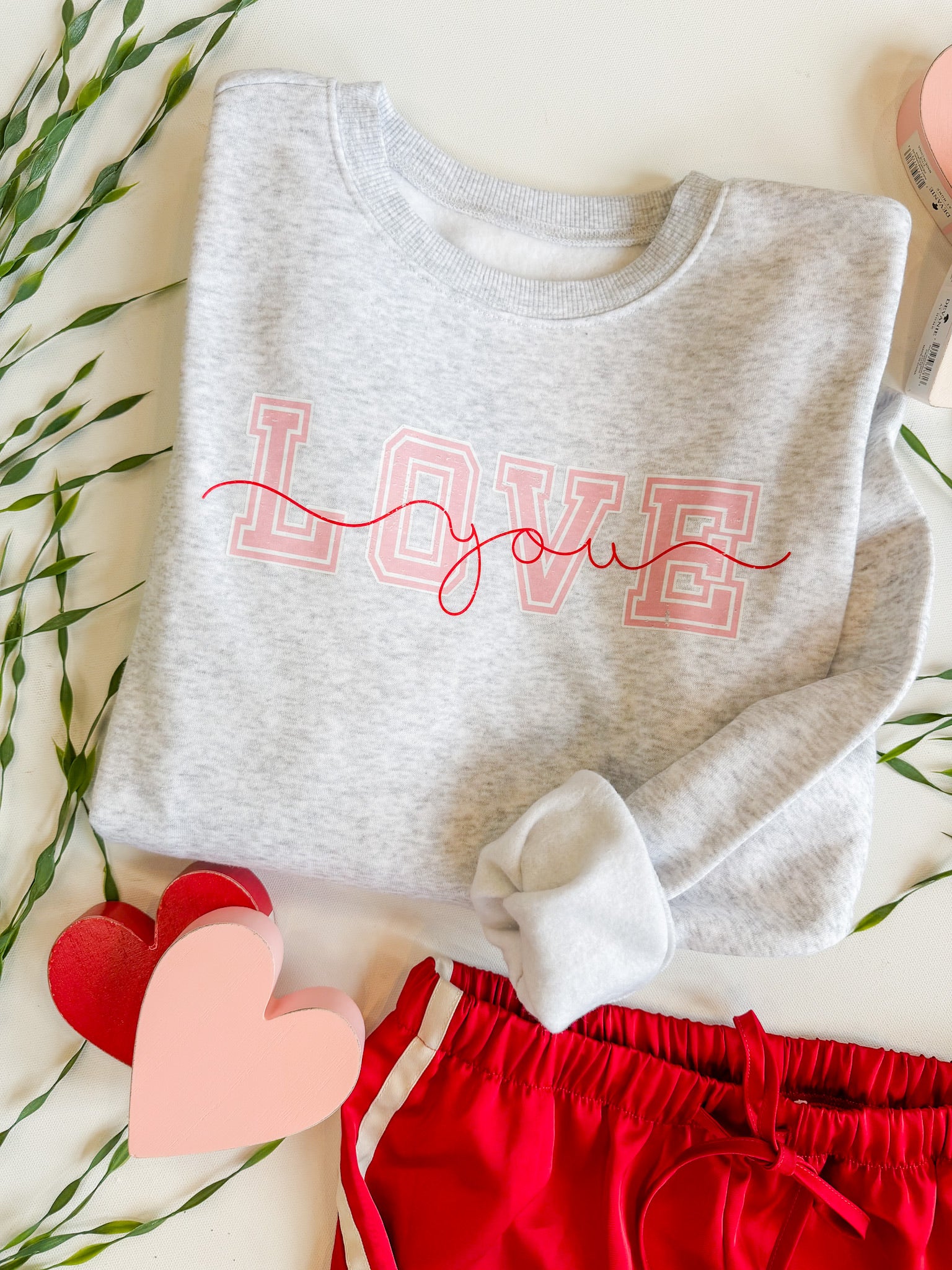 Easy, cozy and just the right amount of sweet — this heather gray graphic sweatshirt is one you’ll reach for on repeat. The soft pink varsity-style “LOVE” paired with a handwritten red script adds a playful Valentine’s touch without feeling seasonal-only, making it perfect for now and straight into spring.