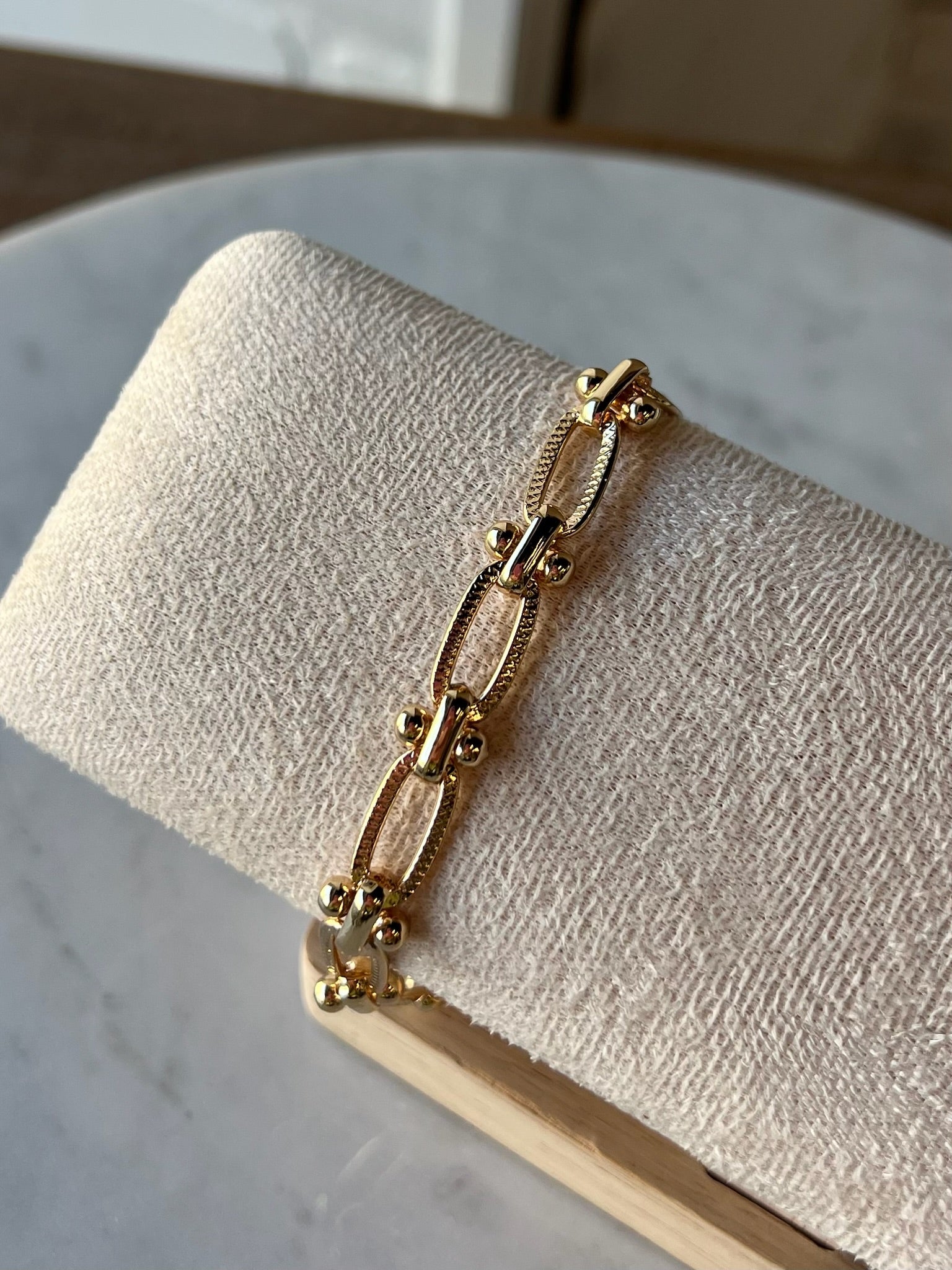 Sleek, timeless and effortlessly chic, this gold link chain bracelet is one of those pieces that instantly elevates any look. The polished elongated links give it a modern feel while still keeping things classic and wearable for everyday.