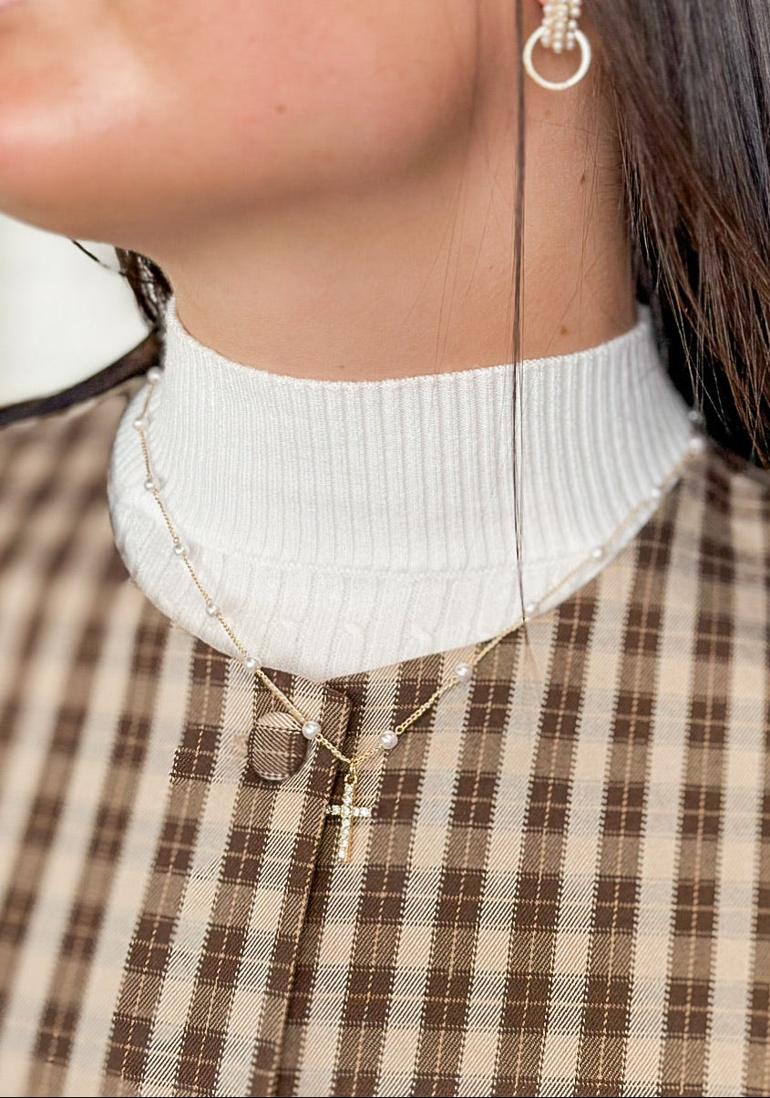 Grace meets simplicity. This dainty layered necklace features a gold cross pendant paired with delicate pearl accents — perfect for adding a touch of faith and elegance to any outfit.