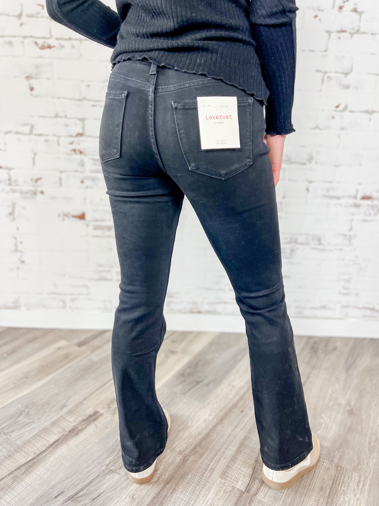 These mid rise bootcut jeans are the sleek black essential your wardrobe always needs. Designed with comfort stretch denim, they offer a soft flexible feel that moves with you while still keeping a polished structured look. The full length bootcut silhouette creates a long flattering line that pairs perfectly with heels boots or simple everyday sneakers.